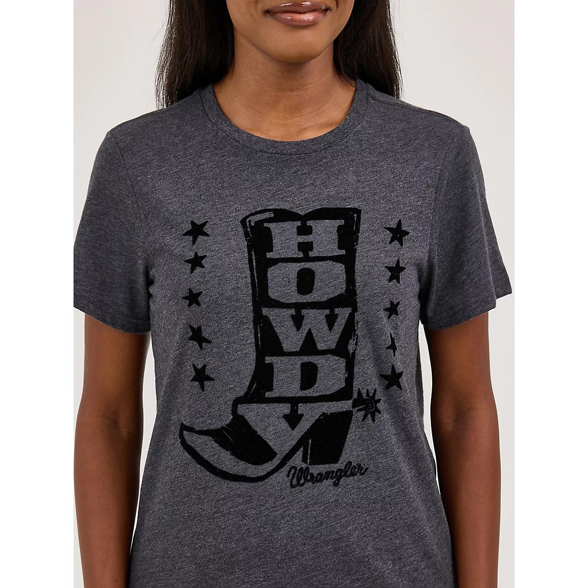 Grab your favorite boots, because our Women’s Flocked Boot Regular Fit Tee is ready to shuffle its way right into your closet. This classic crewneck comes with a fun graphic print of a boot silhouette in black flocking, with the word “Howdy” to help you make an entrance everywhere you go. Plus, it’s crafted from a comfortable cotton blend you can wear from one season to the next.