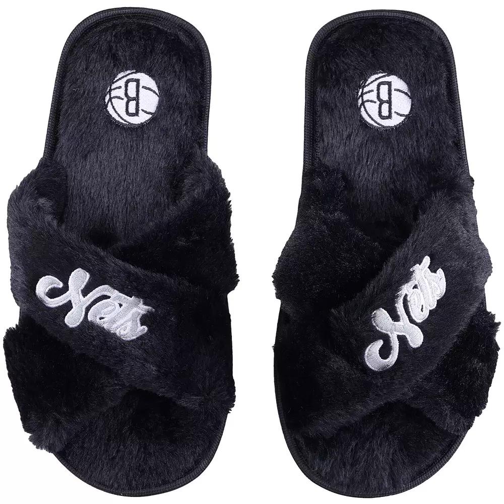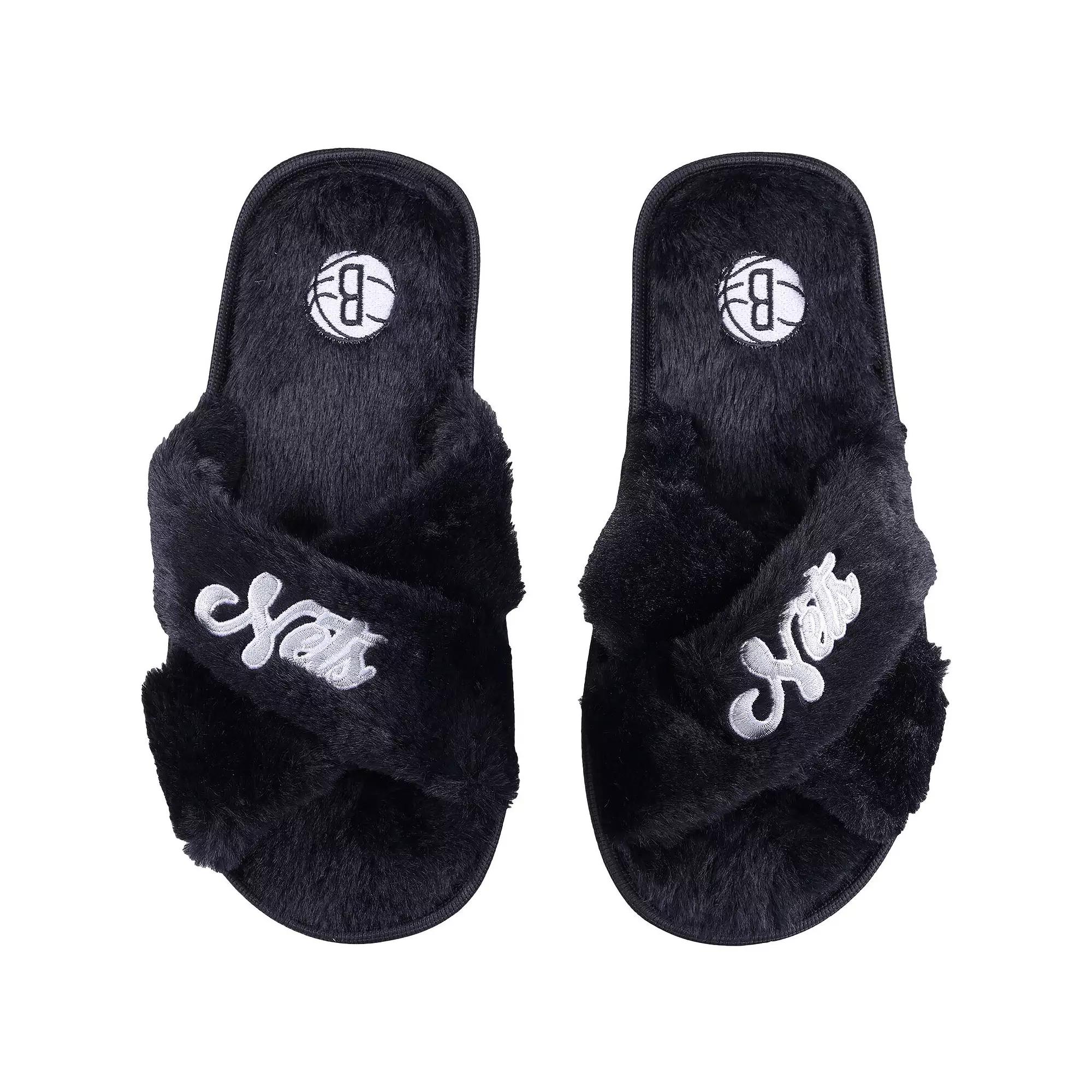 Kick your feet up and relax during the Brooklyn Nets game with these Script Cross slide slippers from FOCO. Made with soft faux fur with a textured bottom, these slippers are perfect for comfortably enjoying the game from home. Not to mention their embroidered graphics and team colors help you show your continued support of the Brooklyn Nets.