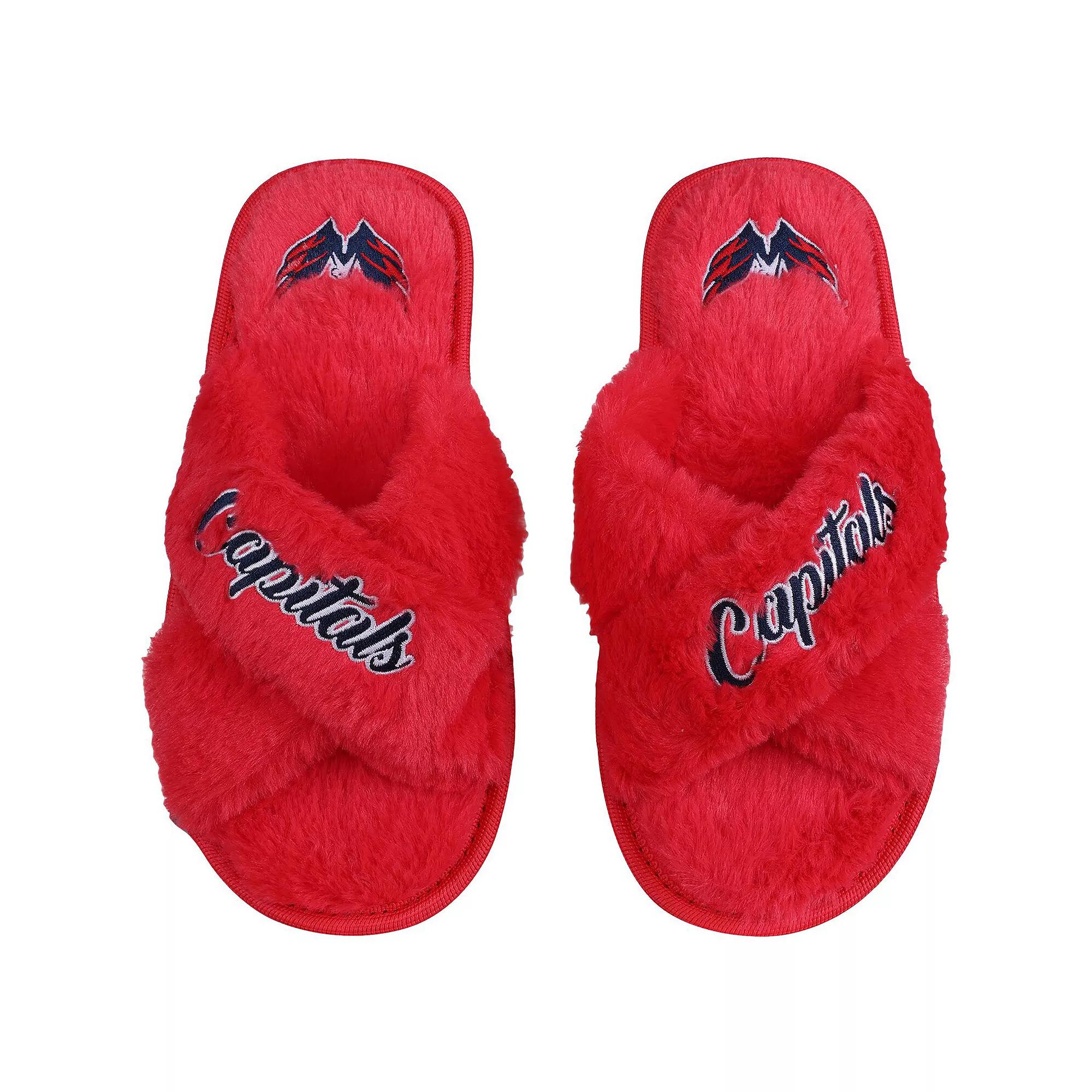 Kick your feet up and relax during the Washington Capitals game with these Script Cross slide slippers from FOCO. Made with soft faux fur with a textured bottom, these slippers are perfect for comfortably enjoying the game from home. Not to mention their embroidered graphics and team colors help you show your continued support of the Washington Capitals. Imported. Officially licensed. Size M fits US women's shoe sizes 78. Brand: FOCO. Material: 100% Polyester Upper; 50% Polyethylene Foam/50% Polyurethane Foam Filling Material; 100% TPR with Fabric - Sole. Embroidered graphics. Textured outsole. Surface washable. Faux fur upper. Slip-on design. Size: XL. Color: Navy. Gender: female. Age Group: adult. Material: OTHER MATERIAL.