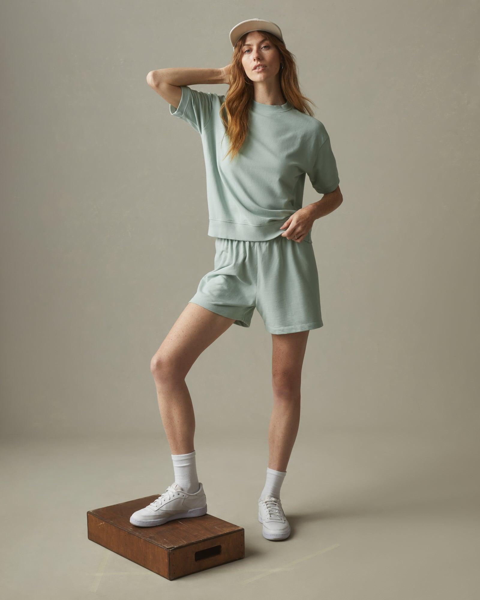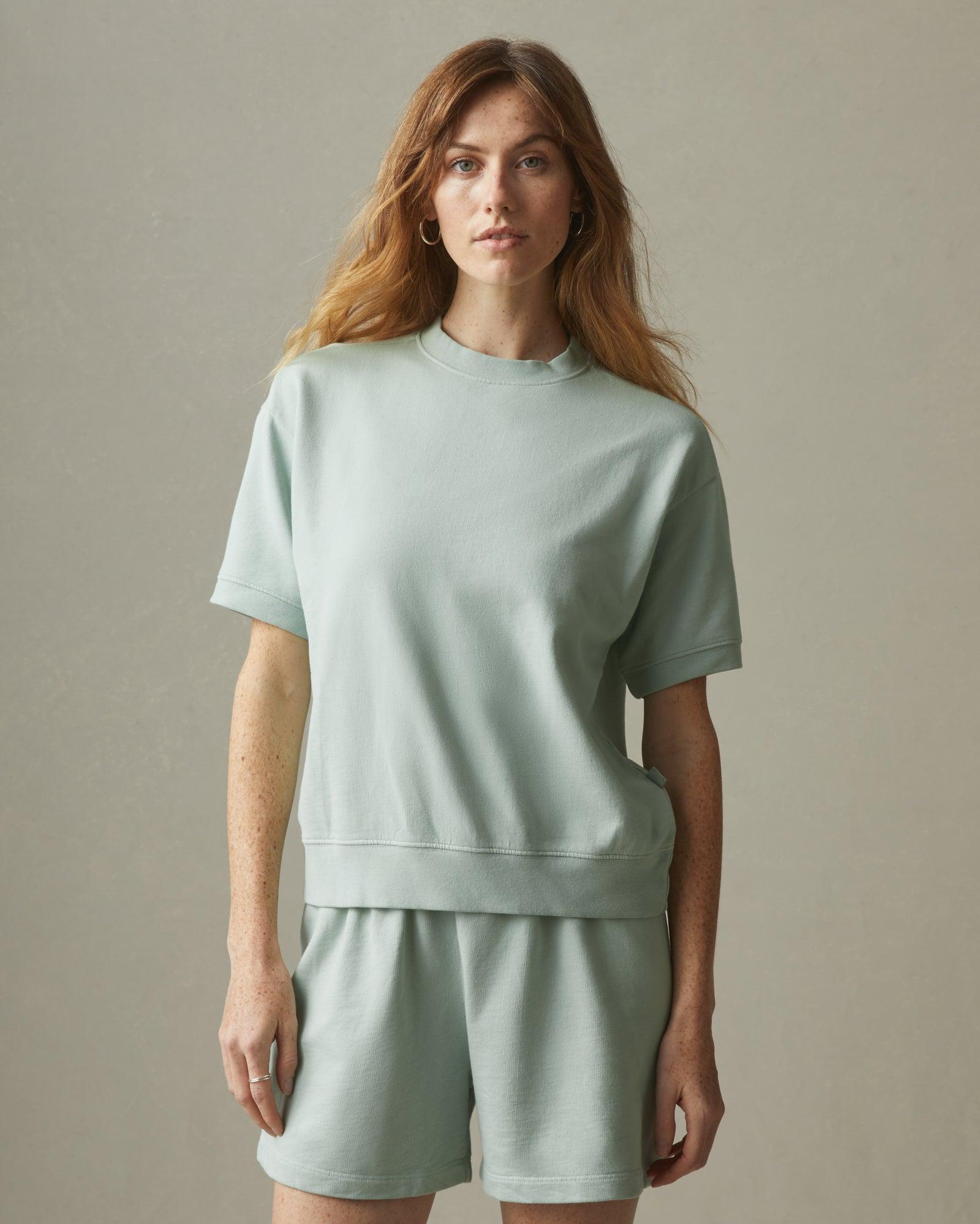 Women's French Terry Short Sleeve Sweatshirt - Aqua Grey Female