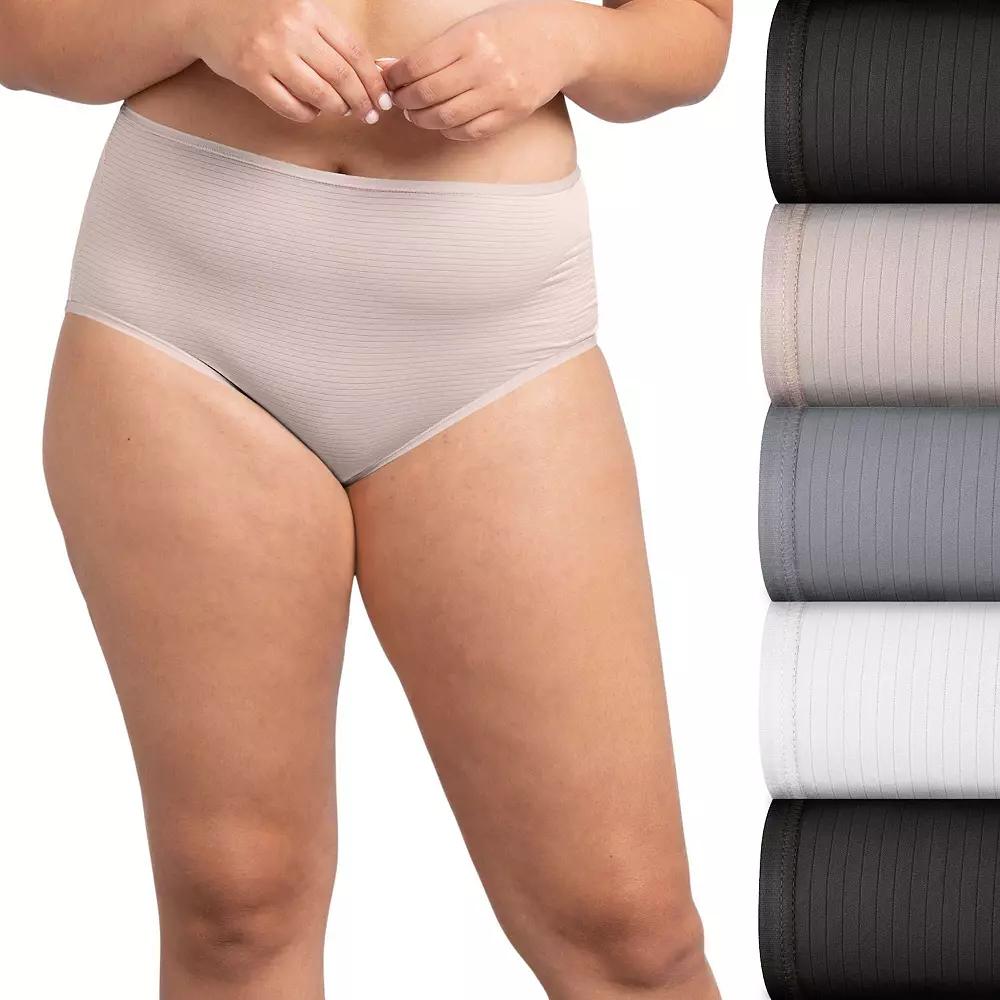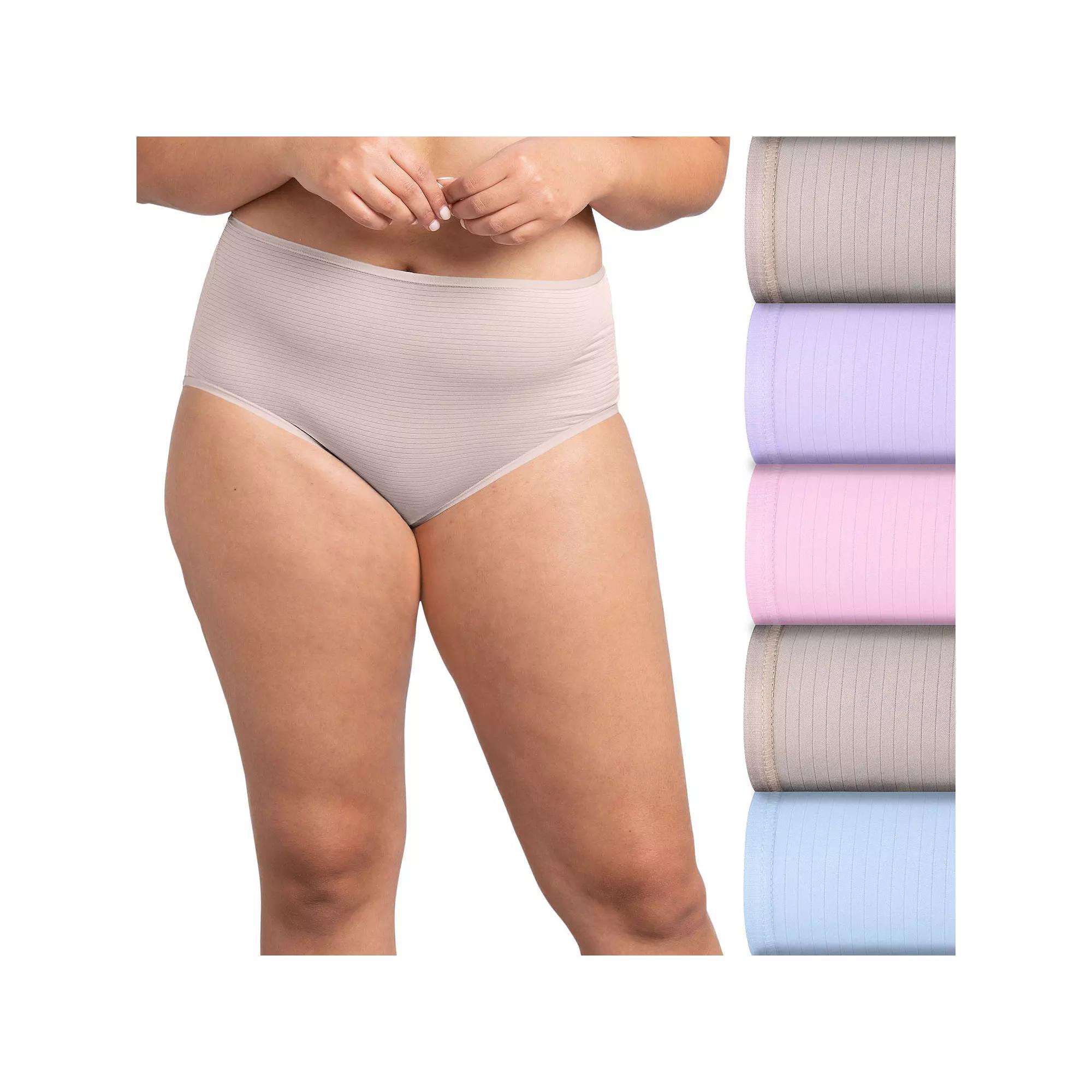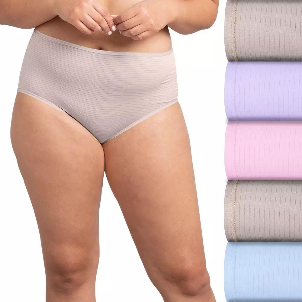 These womens Fruit of the Loom Signature brief panties are the perfect addition to your everyday collection. These womens Fruit of the Loom Signature brief panties are the perfect addition to your everyday collection.Click on this INTIMATES & SLEEPWEAR Guide to find the perfect fit and more! FEATURES Breathable, ventilated fabrication Cooling waist and legs for enhanced comfort Moisture-wicking construction Smooth under clothes Tag free Lined Style no. 5DBCSBRK Brief stylingFIT & SIZING High rise sits below the natural waistline Brief stylingFABRIC & CARE Polyester, spandex Lining: Cotton Machine wash and tumble dry low Imported Size: 9. Color: Lilac Petal Asst. Gender: female. Age Group: adult. Pattern: stripe.
