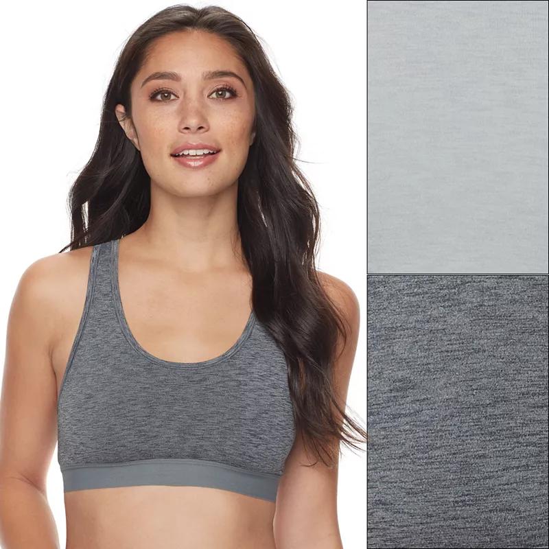 Your dream bralette: Ultra Flex by Fruit of the Loom! This Ultra Flex bralette is made with stretch fabric to fit your shape & move with your body. Ultra Flex will not bind or pinch. This bralette is smooth under clothes & fits like a dream!Your dream bralette: Ultra Flex by Fruit of the Loom! This Ultra Flex bralette is made with stretch fabric to fit your shape & move with your body. Ultra Flex will not bind or pinch. This bralette is smooth under clothes & fits like a dream!How to Choose a Sports Bra2-packPerfect for low-impact activities such as walkingHigh recovery stretch fabric provides great comfort and freedom of movementWicks moisture to keep you coolFlat and soft stitches for no bulkiness under clothesRacerback stylePerfect for loungeUnpaddedWire-freeScoopneck great for layeringStyle no. 2DDFBRAFIT & SIZINGPullover stylingSmall: 32A-C, 34A-B, 36A Medium: 32D, 34C-D, 36B-C, 38A Large: 34DD, 36D-DD, 38B-C, X Large: 38D-DD, 40B-C2X Large: 40D-DD, 42B-DFABRIC & CARENylon, polyester, spandexMachine washImported Color: Feather Gray Asst. Gender: female. Age Group: adult.