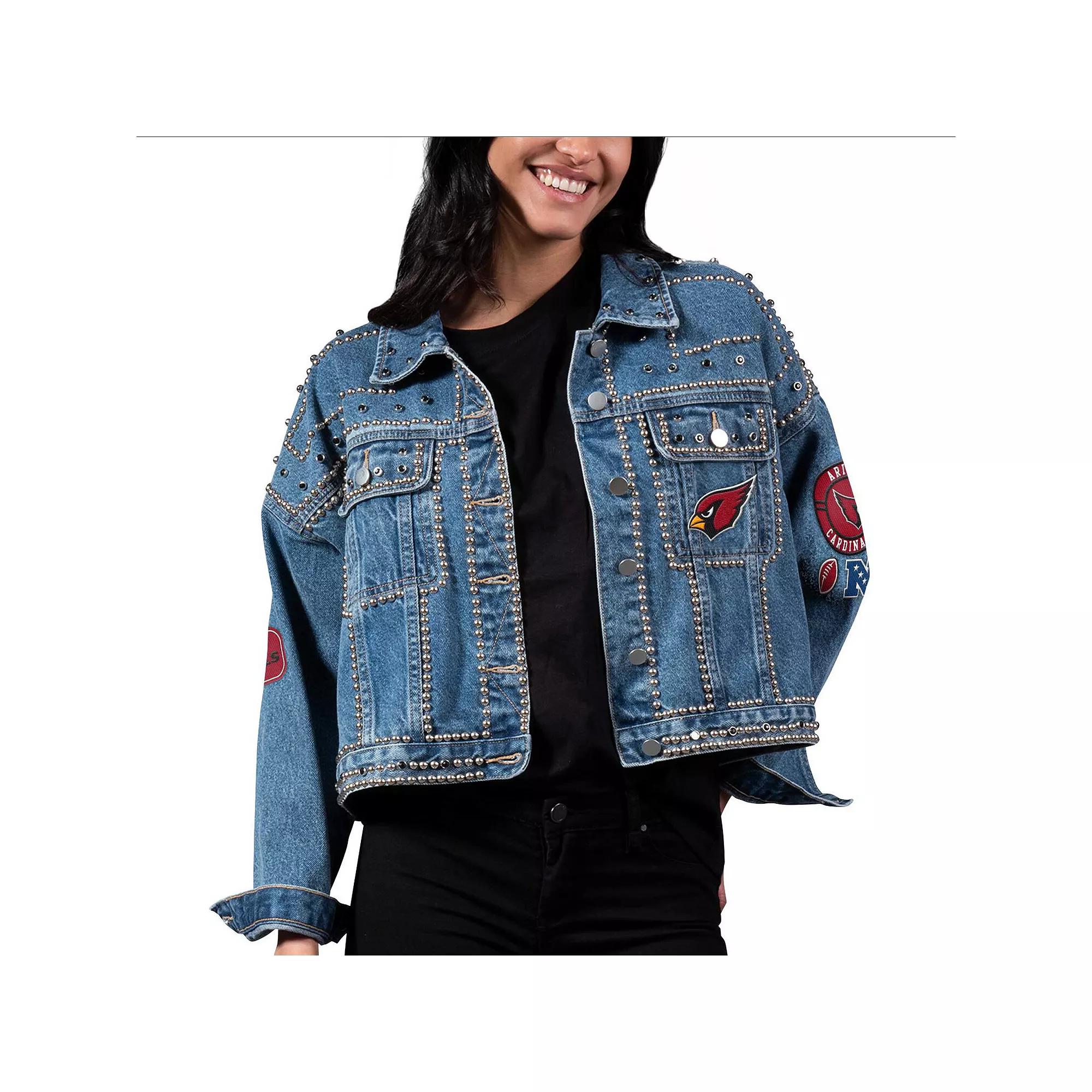 Where high fashion meets Arizona Cardinals spirit, this G-III 4Her by Carl Banks denim jacket is just what you need to elevate your fandom on game days. It features authentic Arizona Cardinals patches on the chest and sleeves while the bead embellishments add some razzle-dazzle. The two front pockets hold your essentials securely while the cozy denim fabric keeps you feeling as fabulous as you look. Adjustable back hem with two-button closure. Machine wash, tumble dry low. Full-button front. Officially licensed. Long sleeve. Material: 100% Cotton. Dropped shoulders. Embellished metal studs. Cropped. Midweight jacket suitable for moderate temperatures. Two chest pockets with button closures. Imported. Brand: G-III 4Her by Carl Banks. Embroidered fabric appliques. One-button closures at cuffs. Locker loop. Size: 2X. Color: Blue. Gender: female. Age Group: adult.