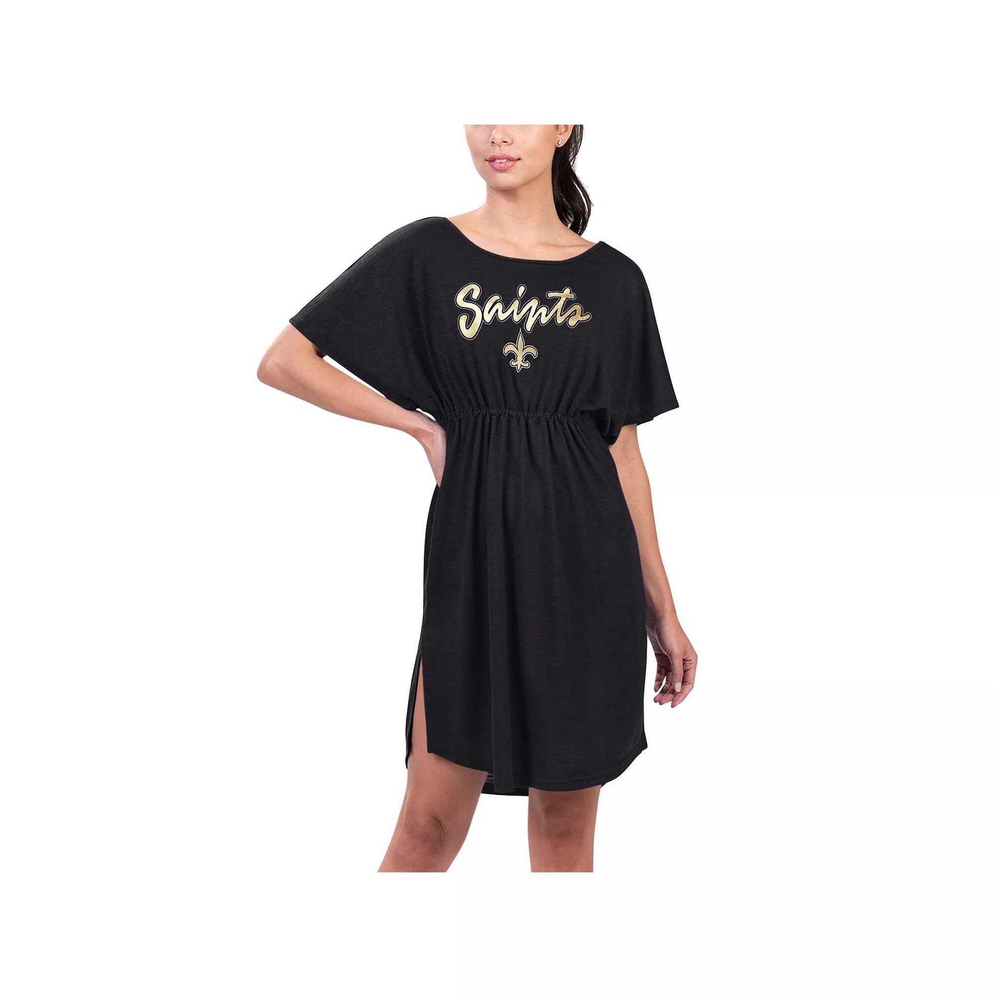 Layer up by the pool or beach in this Jacksonville Jaguars Versus swim cover-up. Its open-back design from G-III 4Her by Carl Banks features shiny Jacksonville Jaguars graphics printed across the front on soft slub jersey fabric. A tie closure lets you adjust the loose fit for the most comfortable coverage. Boat neck. Screen print graphics with foil details. Short sleeve. Machine wash with garment inside out, tumble dry low. Open back. Officially licensed. Dolman sleeves. Outseam on size S measures approx. 22. Cinched waistline with drawstring closure at back. Brand: G-III 4Her by Carl Banks. Loose fit. Material: 100% Polyester. Rounded droptail hem with side splits. Imported. Color: Black. Gender: female. Age Group: adult. Material: COTTON.