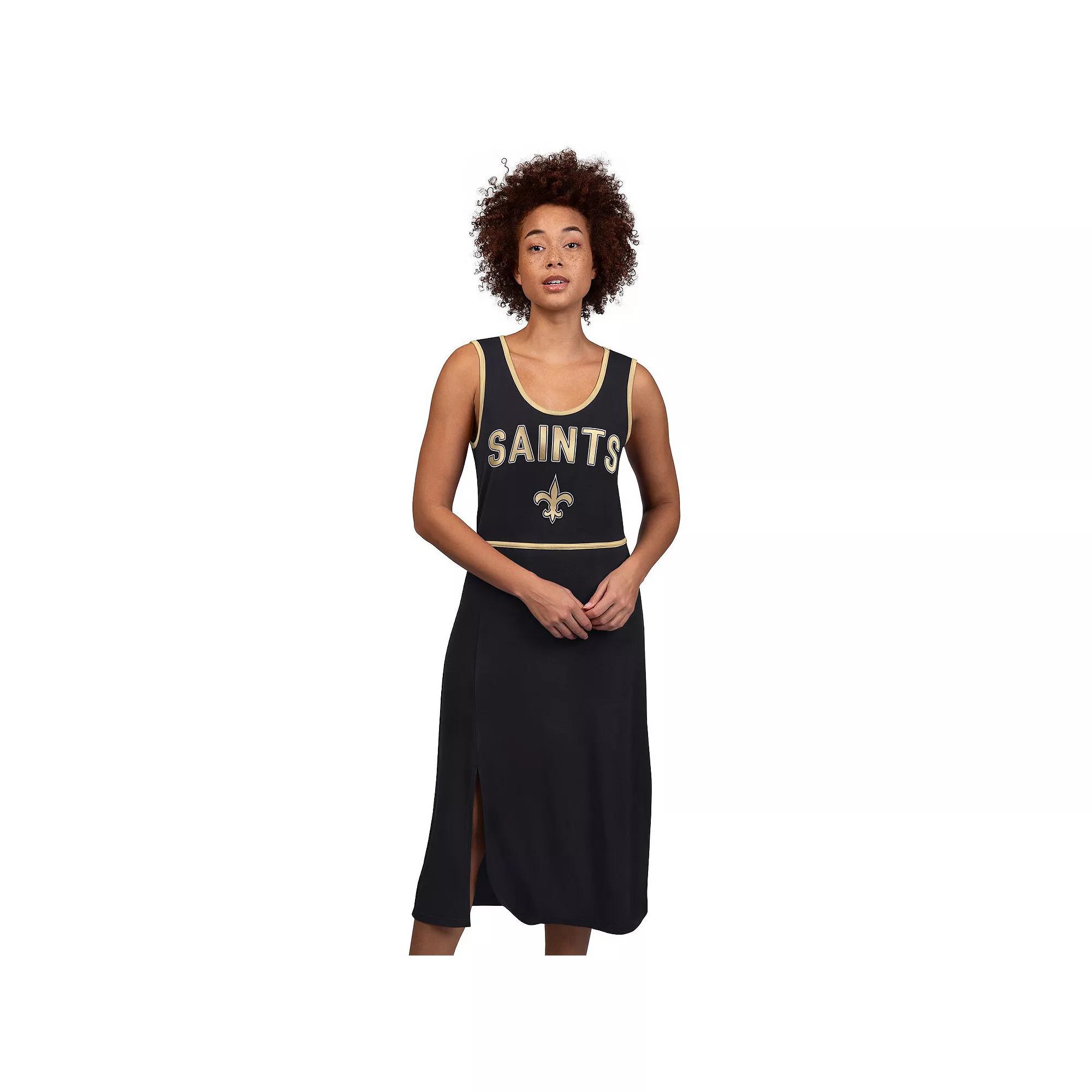 Change up your usual outfit on New Orleans Saints game day with this Center Field Maxi Dress. Its stylish design from G-III 4Her by Carl Banks features contrast-color trim and stripes that accentuate the New Orleans Saints graphics printed across the front. A tie closure at the back of the neck lets you adjust the fit for the most comfortable wearing.Change up your usual outfit on New Orleans Saints game day with this Center Field Maxi Dress. Its stylish design from G-III 4Her by Carl Banks features contrast-color trim and stripes that accentuate the New Orleans Saints graphics printed across the front. A tie closure at the back of the neck lets you adjust the fit for the most comfortable wearing.PRODUCT FEATURESSleevelessMachine wash, tumble dry lowMaterial: 95% Rayon/5% SpandexTie closure at backOfficially licensedScreen print graphicsBrand: G-III 4Her by Carl BanksFront split measures approx. 13ImportedSide slitOutseam on size S measures approx. 36.5Scoop neck Size: XL. Color: Black. Gender: female. Age Group: adult.