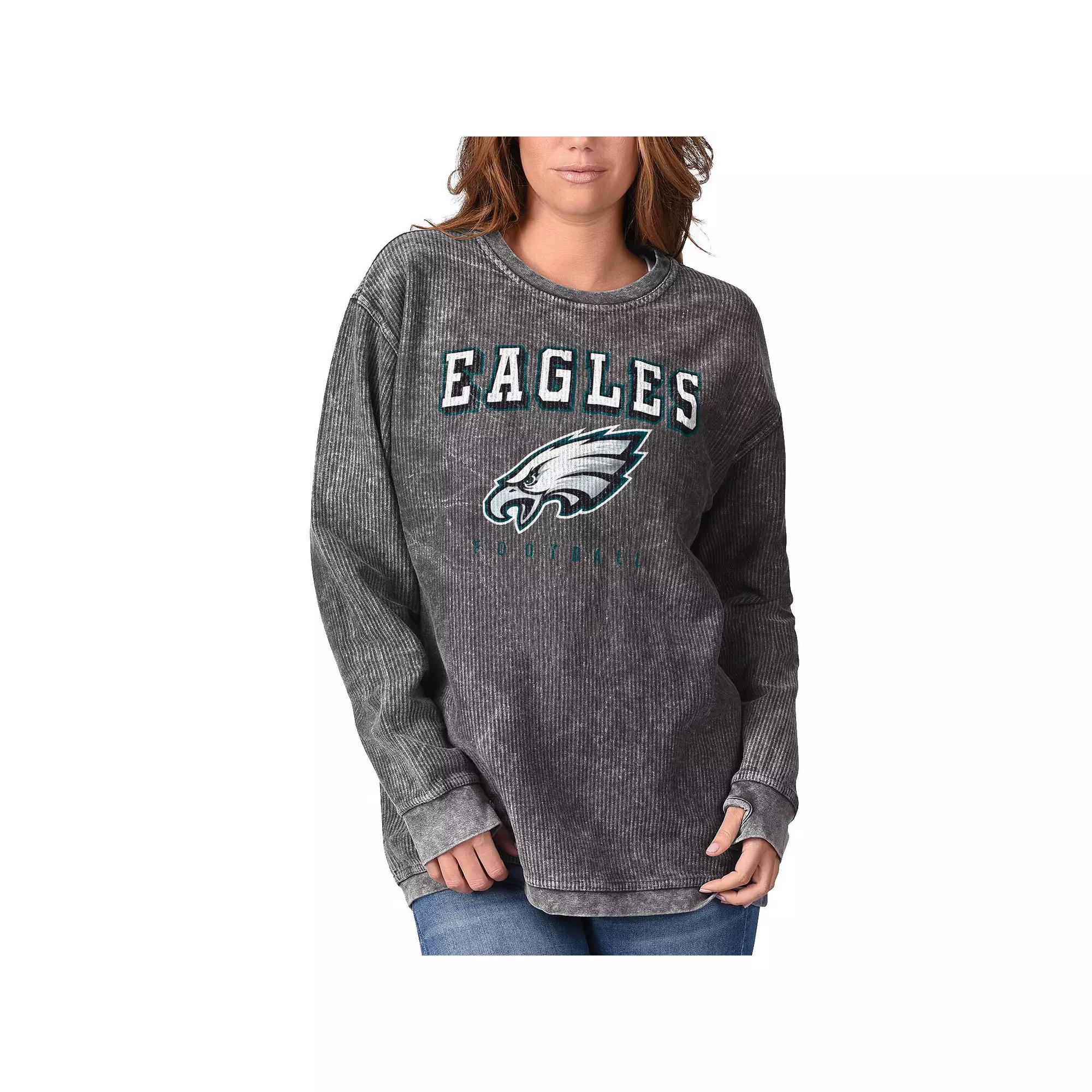 This G-III 4Her by Carl Banks Comfy Cord pullover sweatshirt will grab all the attention on game day. It features unmistakable Philadelphia Eagles graphics printed on washed corduroy fabric for a vintage look. An oversized, lightweight design provides the perfect fit.This G-III 4Her by Carl Banks Comfy Cord pullover sweatshirt will grab all the attention on game day. It features unmistakable Philadelphia Eagles graphics printed on washed corduroy fabric for a vintage look. An oversized, lightweight design provides the perfect fit.Lightweight sweatshirt suitable for mild temperaturesCrew neckWashed corduroy fabric for a vintage lookBrand: G-III 4Her by Carl BanksPulloverScreen print graphicsThumbholes in cuffsLong sleeveOfficially licensedMaterial: 100% CottonImported Size: XL. Color: Black. Gender: female. Age Group: adult.