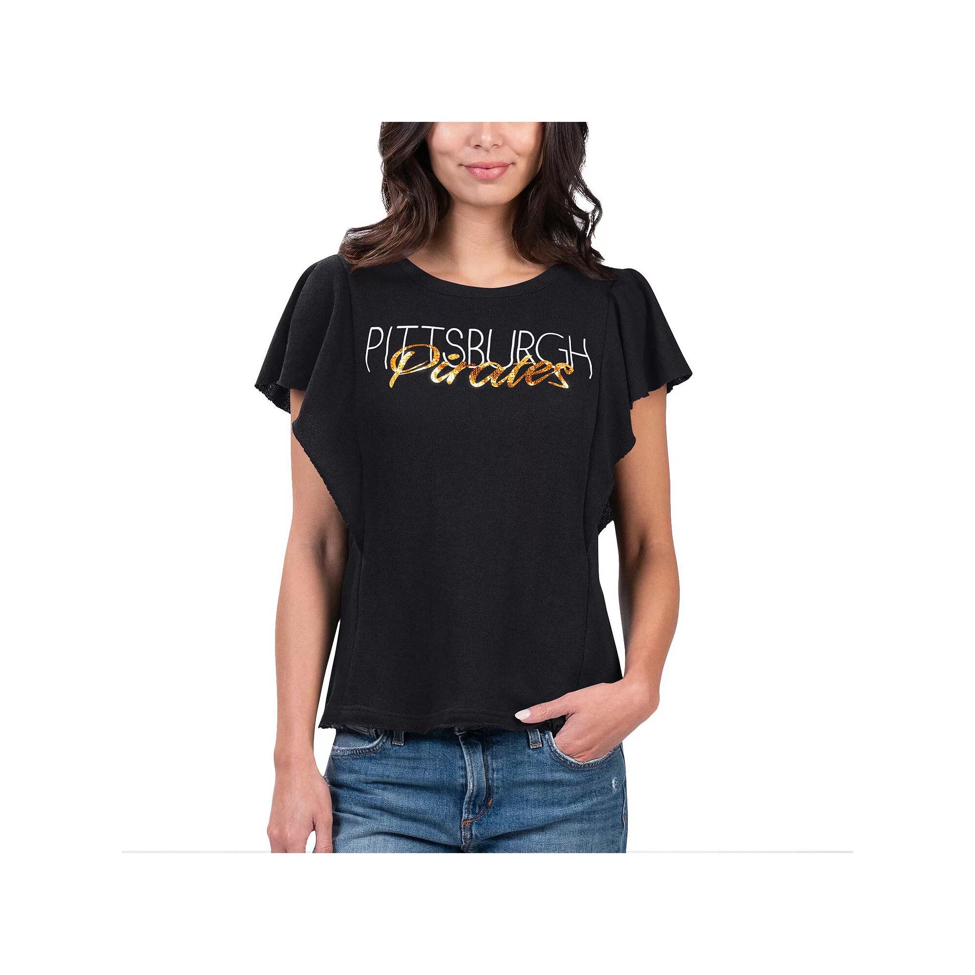 Make your Pittsburgh Pirates spirit sparkle in this Crowd Wave T-shirt. Its fashionable design from G-III 4Her by Carl Banks features the team name in shiny sequins and flared sleeves for a flowy touch. Blended material gives this Pittsburgh Pirates tee a softer and more comfortable feel.