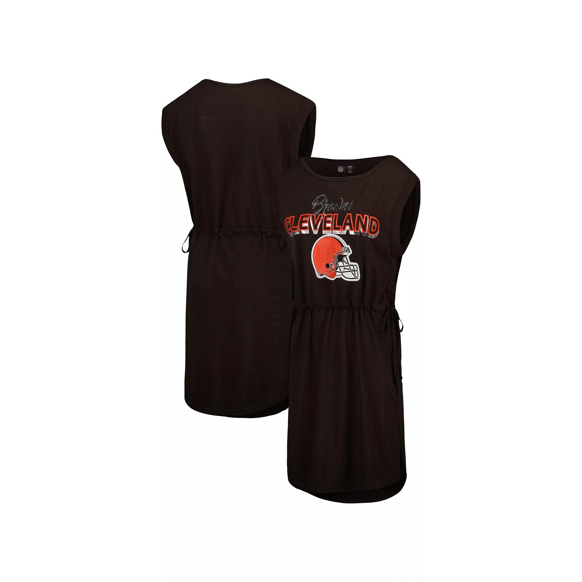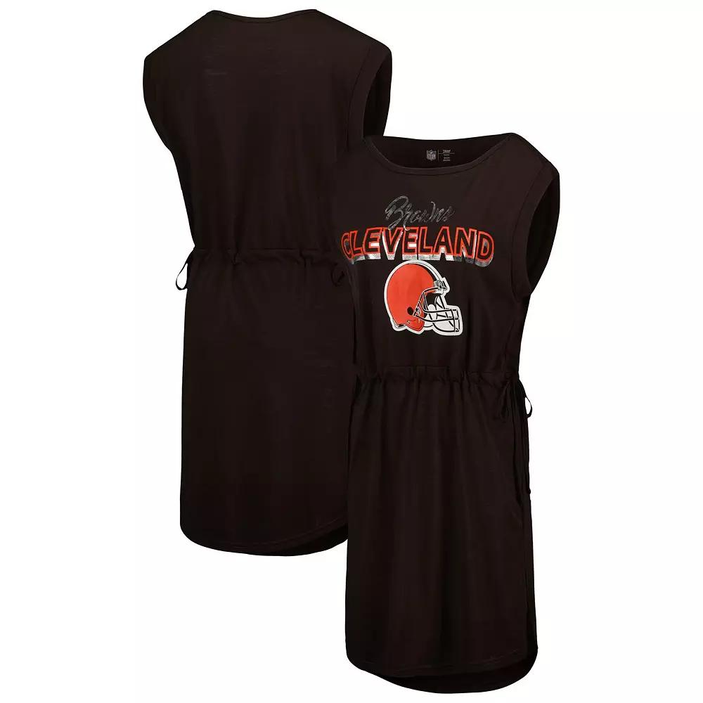 Wear your swimsuit underneath this G.O.A.T. cover-up from G-III 4Her by Carl Banks to show your Cleveland Browns spirit all summer long. It features an adjustable waistband that ties at the sides and a longer, rounded hem for a more comfortable fit. The Cleveland Browns logo is also accentuated by the team name in large, shiny letters. Machine wash with garment inside out, tumble dry low. Slub fabric. Rounded hem. Imported. Screen print graphics with foil detail. Sleeveless. Outseam on size S measures approx. 16'' with an additional 6'' split. Officially licensed. Drawstring waistband. Material: 100% Polyester. Brand: G-III 4Her by Carl Banks. Boat neck. Gender: female. Age Group: adult. Material: COTTON.
