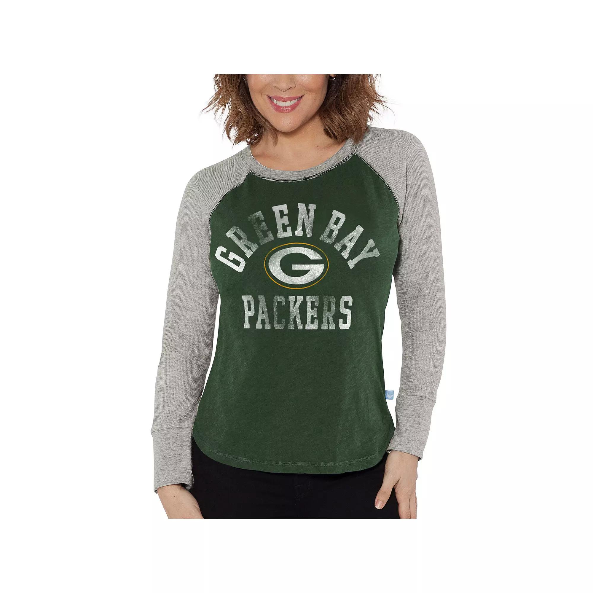 Combine the style of a classic long sleeve T-shirt with some Green Bay Packers spirit and youll get this Waffle Knit top from G-III 4Her by Carl Banks. It features a vibrant colorway and throwback-inspired graphics to showcase your timeless Green Bay Packers devotion. The roomy raglan sleeves give you more freedom of movement for ultimate levels of comfort.