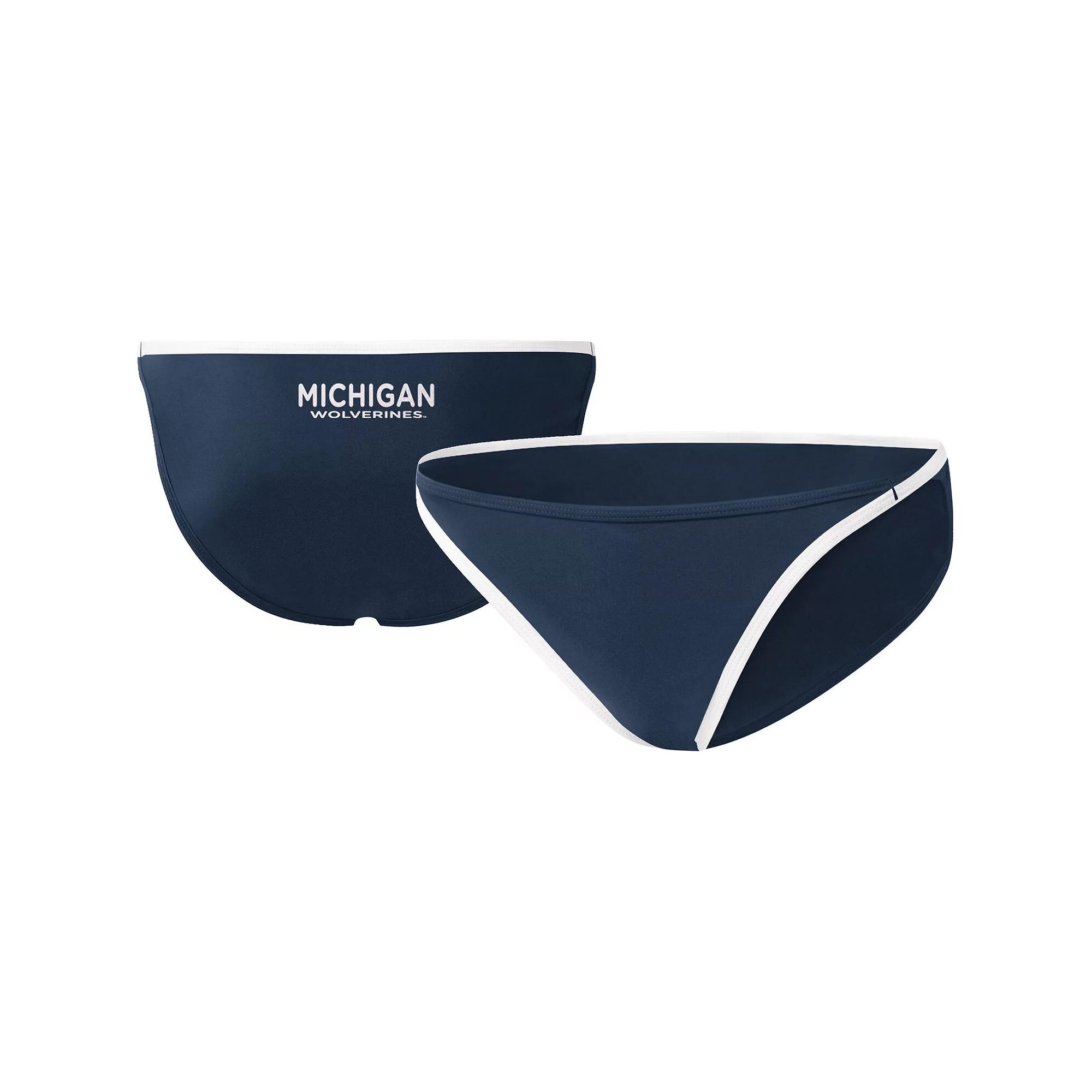 Enjoy some fun in the sun with this Play Action bikini bottom from G-III 4Her by Carl Banks. Designed with distinctive Michigan Wolverines details, this bottom is perfect for showing off your team spirit. Rest assured, you'll enjoy a perfect fit as you rep the Michigan Wolverines. Material: 84% Nylon/16% Spandex - Shell; 83% Polyester/17% Spandex - Lining. Top sold separately. Brand: G-III 4Her by Carl Banks. Imported. Hand wash, line dry. Heat-sealed graphics. Officially licensed. Color: Navy. Gender: female. Age Group: adult. Material: COTTON.