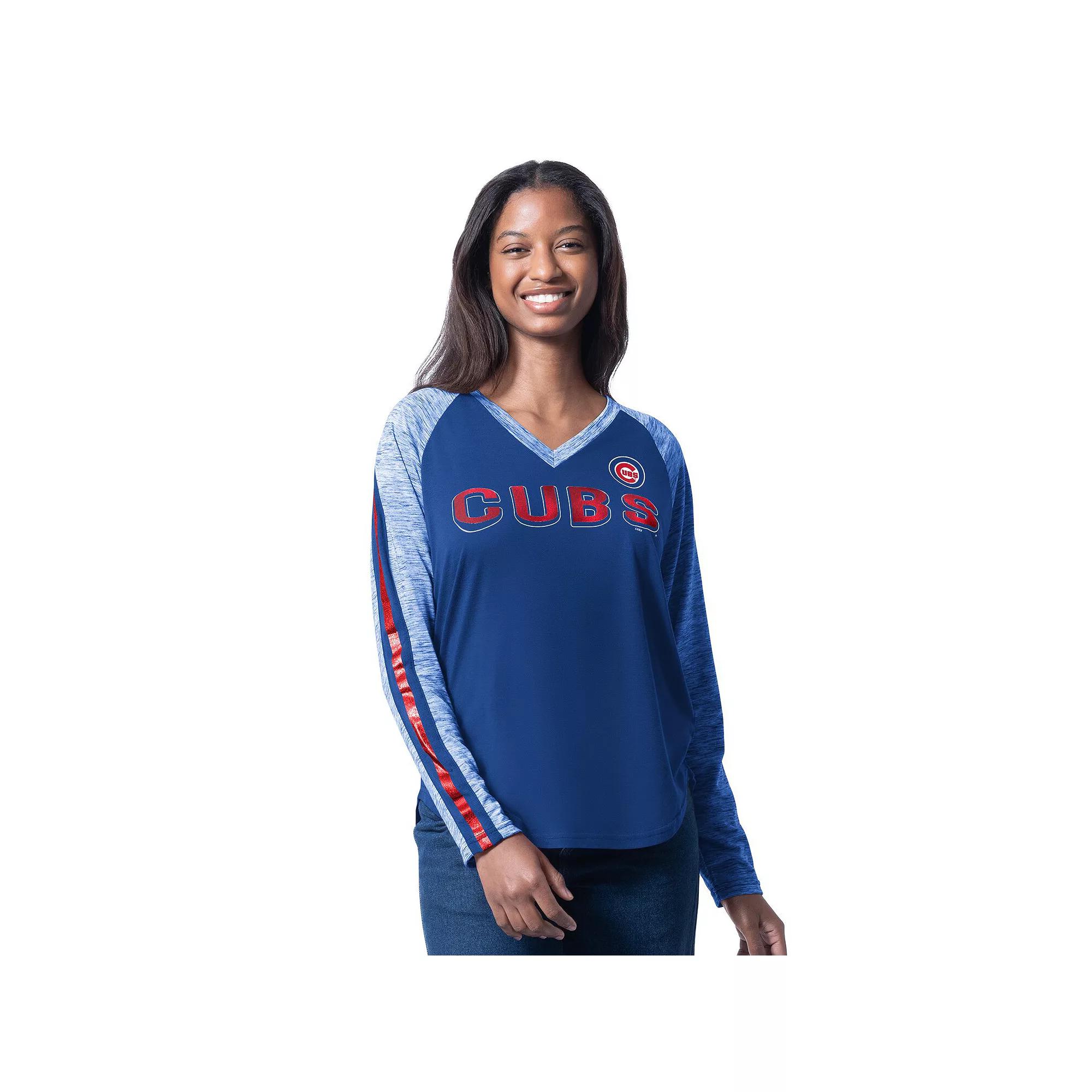 Show off your unwavering team spirit with this New York Yankees Top Dog Raglan Long Sleeve V-Neck T-Shirt from G-III 4Her by Carl Banks. The rounded droptail hem provides additional coverage and a flattering silhouette, while the raglan sleeves offer greater freedom of movement in the shoulders and arms. The glitter details add a touch of sparkle, making this tee a standout piece in any New York Yankees fan's wardrobe. Team logo on left chest. Long sleeve. Rounded droptail hem. Brand: G-III 4Her by Carl Banks. Raglan sleeves for greater freedom of movement in the shoulders and arms. Machine wash with garment inside out, tumble dry low. Officially licensed. Very lightweight, breathable t-shirt. Material: 65% Polyester/35% Viscose - Solid Color; 90% Polyester/10% Cotton - Heathered Color. Screen print graphics. Printed team wordmark and sleeve stripes with glitter details. Imported. V-neck. Color: Navy. Gender: female. Age Group: adult.