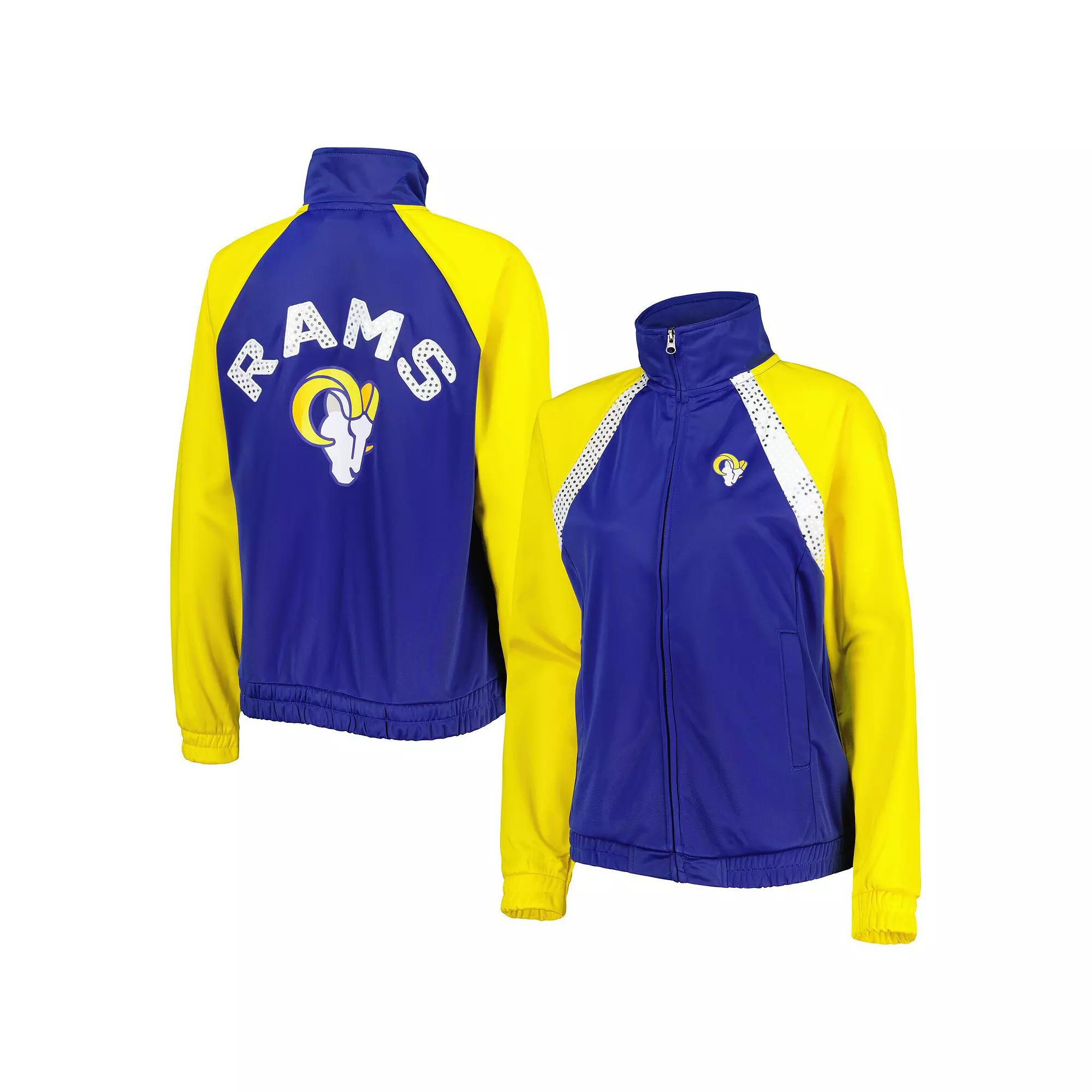 Stay stylish in Los Angeles Rams team spirit with this Confetti track jacket. From G-III 4Her by Carl Banks, it features the team's logo on the back and a dazzling wordmark on the back. The contrast-color raglan sleeves provide extra comfort, perfect for Los Angeles Rams game days.