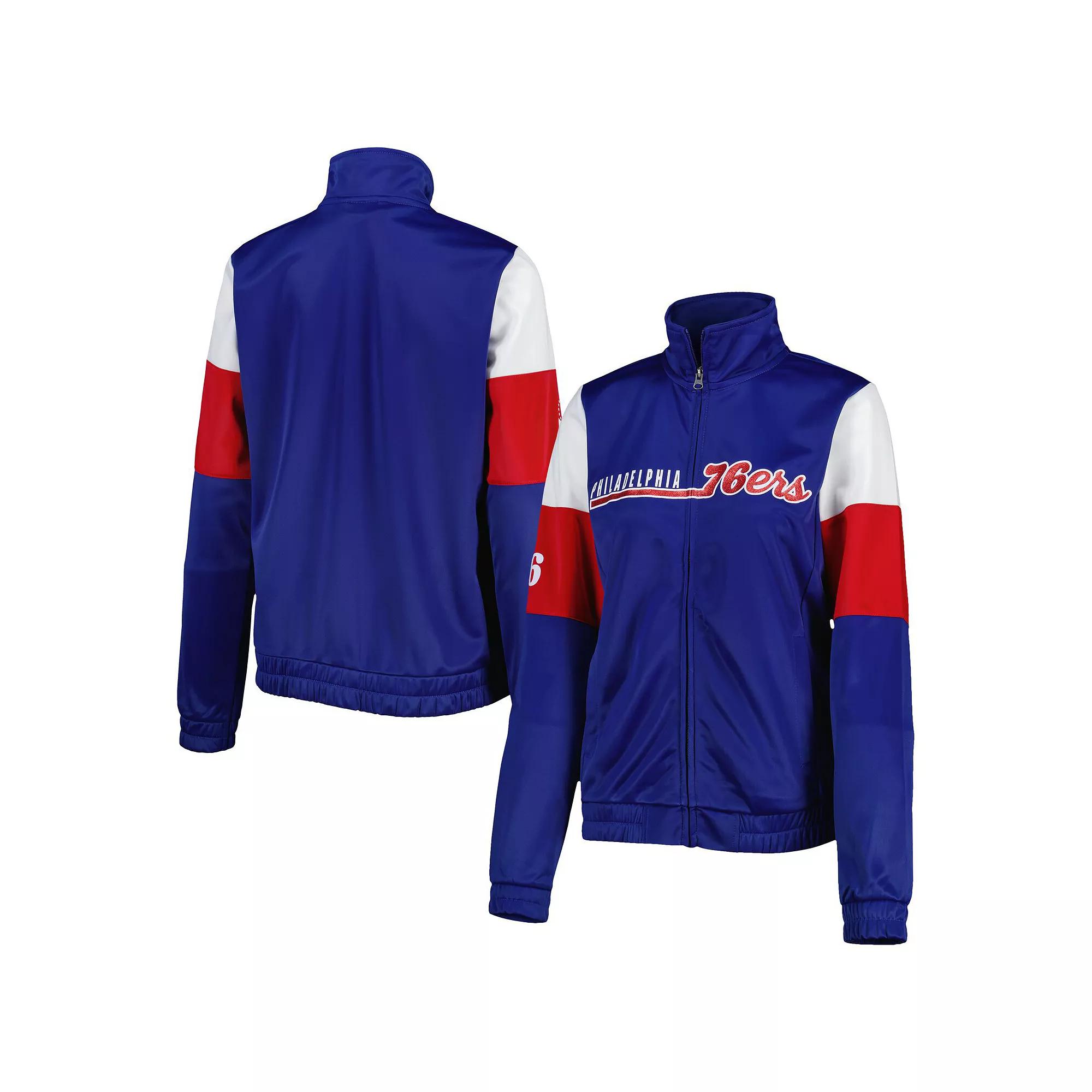 When the Philadelphia 76ers hit the hardwood, be prepared to cheer them on in style with this Change Up full-zip track jacket from G-III 4Her by Carl Banks. The iconic team graphics displayed on the front feature glitter detail, which helps your die-hard fandom sparkle and shine. The lightweight material making up this microfleece-lined top is sure to keep you warm and comfortable while you represent the Philadelphia 76ers.When the Philadelphia 76ers hit the hardwood, be prepared to cheer them on in style with this Change Up full-zip track jacket from G-III 4Her by Carl Banks. The iconic team graphics displayed on the front feature glitter detail, which helps your die-hard fandom sparkle and shine. The lightweight material making up this microfleece-lined top is sure to keep you warm and comfortable while you represent the Philadelphia 76ers.Full-zipOfficially licensedMicrofleece liningElastic cuffs and hemScreen print graphics with glitter detailLightweight jacket suitable for mild temperaturesImportedOlympic collarBrand: G-III 4Her by Carl BanksMachine wash with garment inside out, tumble dry lowFull ZipTwo front pocketsContrast-color insetsLocker loopMaterial: 100% PolyesterLong sleeve Color: Blue. Gender: female. Age Group: adult.