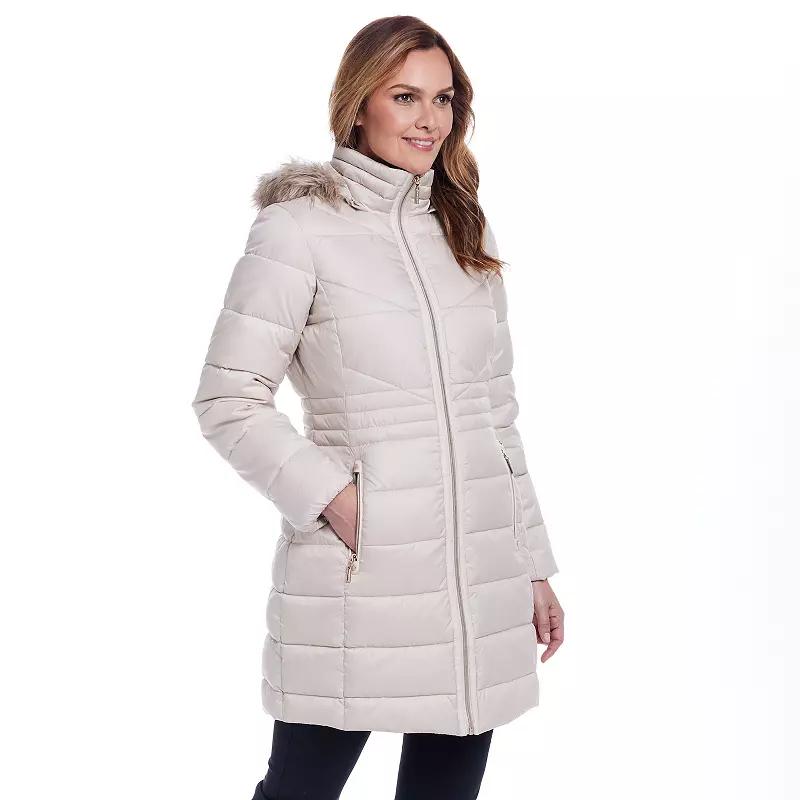 Cozy up in this womens Gallery Faux-Fur Hooded Puffer Jacket.Click on this WOMENS GUIDE to find the perfect fit and more! Cozy up in this womens Gallery Faux-Fur Hooded Puffer Jacket.Click on this WOMENS GUIDE to find the perfect fit and more! FEATURES Removable hood with faux-fur trim Snap & zipper front Long sleeves Front zipper pockets Fully linedFIT & SIZING Heavyweight 35-in. length from shoulder to hem Designed to hit just below the kneesFABRIC & CARE Body, fill, lining: polyester Trim: acrylic, polyester Machine wash and tumble dry low Imported Size: Small. Color: Peyote. Gender: female. Age Group: adult.