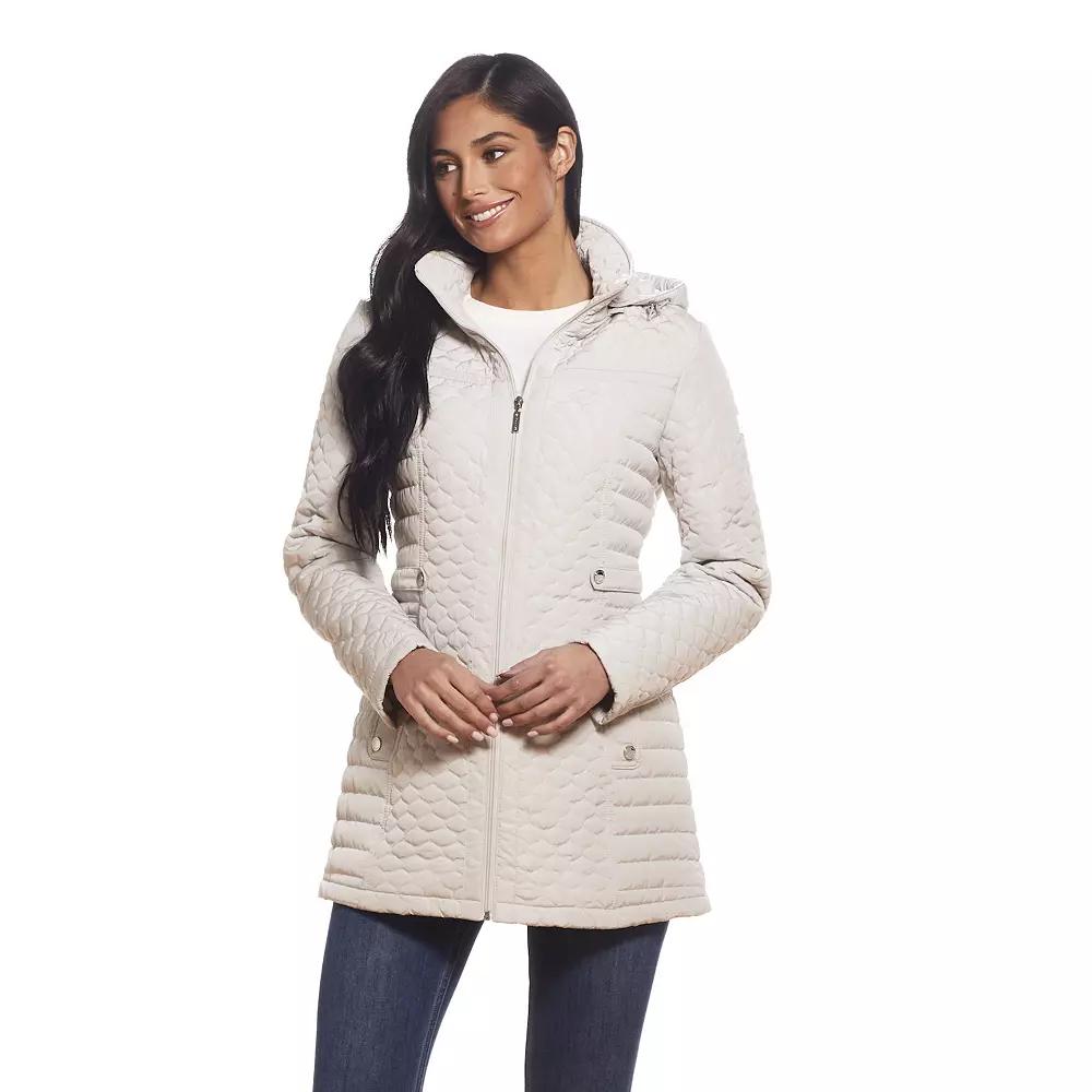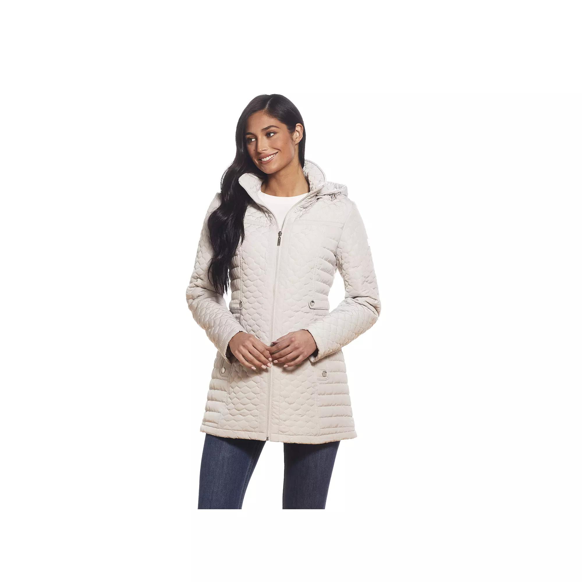 You'll be cute and cozy in this women's Gallery quilted jacket. Click on this WOMEN'S GUIDE to find the perfect fit and more! - https://www.kohls.com/feature/womens-fit-guide.jsp. Quilted design, Removable hood, Zipper front, Long sleeves, 2 pocket. FIT & SIZING: 31-in. approximate length from center back to hem, Designed to hit just below the waist, Side tabs for a custom fit, Midweight. FABRIC & CARE: Shell & lining: polyester, Machine wash - Delicate, Imported. Size: Medium. Color: White. Gender: female. Age Group: adult. Pattern: Solid.