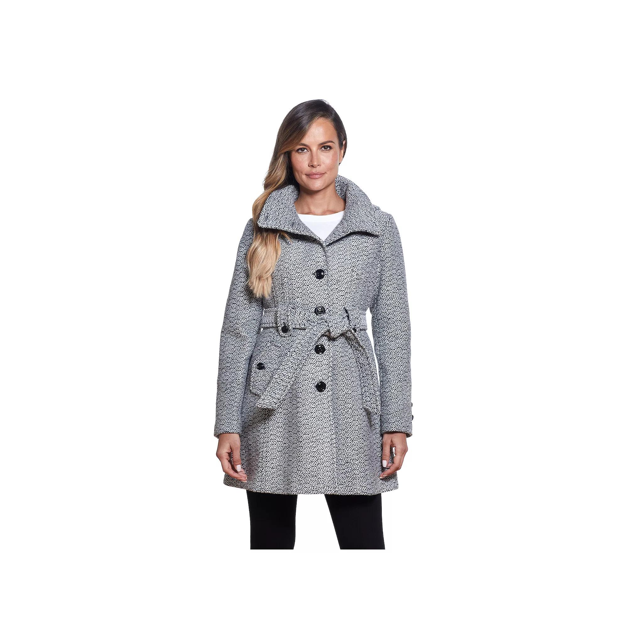 Polished winter style is yours with this women's wool-blend coat by Gallery. Polished winter style is yours with this women's wool-blend coat by Gallery. Tweed design Removable hood Button front Long sleeves Coordinating sash belt Wool-blend construction 2 pocketsFIT & SIZING Designed to hit just below the knees HeavyweightFABRIC & CARE Polyester, wool Lining: polyester Dry clean Imported Size: Large. Color: Print. Gender: female. Age Group: adult.