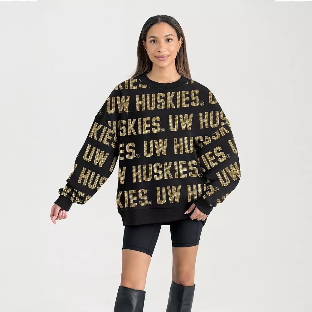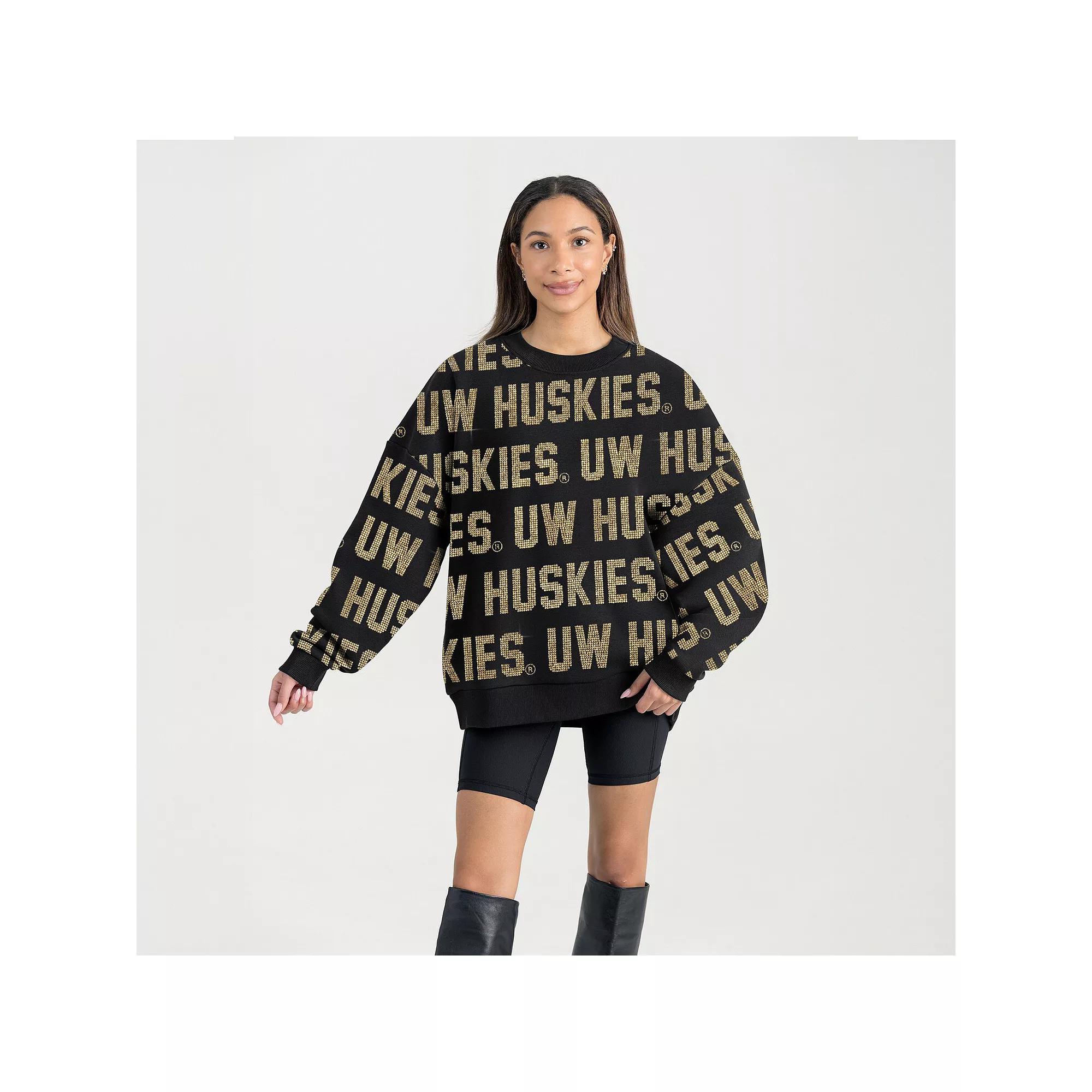 Show off your die-hard fandom in style with this Washington Huskies Hype Era Sweatshirt from Gameday Couture. The dropped shoulders provide increased range of motion and a cozy look, perfect for layering on game day. The all-over rhinestone team name adds a touch of sparkle and undeniable team spirit to your Washington Huskies wardrobe. Imported. Dropped shoulders for increased range of motion and a cozy look. All-over rhinestone team wordmarks. Long sleeve. Rib-knit collar, cuffs and hem give a durable stretch. Material: 60% Cotton/40% Polyester. Crew neck. Brand: Gameday Couture. Pullover. Officially licensed. Oversized Fit: Intentionally designed with larger proportions for a spacious, laidback look. For a less relaxed fit, consider sizing down. Hand wash, tumble dry low. Midweight sweatshirt suited for moderate temperatures. Color: Black. Gender: female. Age Group: adult.