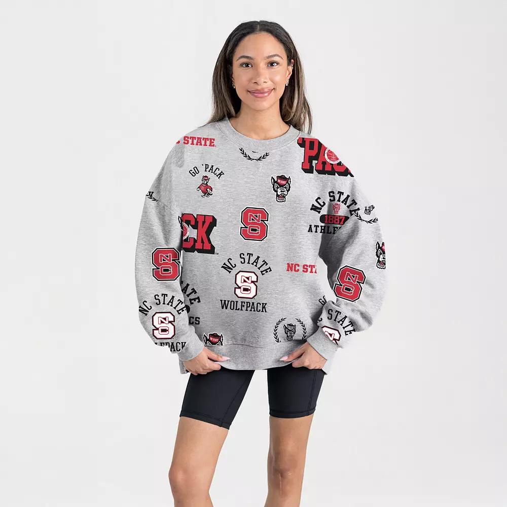 Wrap yourself in comfort and NC State Wolfpack team spirit with this Gameday Couture Always on Repeat Fleece Sweatshirt. Perfect for moderate temperatures, it features a relaxed fit and drop shoulders, giving you a loose and roomy feel. The cozy, premium fleece lining and rib-knit cuffs ensure you stay warm and snug while the allover screen-print graphics let your team pride shine with every touchdown. This is the perfect sweatshirt for repping your NC State Wolfpack in pure, laid-back style. Brand: Gameday Couture. Pullover. Model is wearing a size S and is 5'4. Rib-knit cuffs, waistband and neckline for a snug fit. Cozy, premium fleece lining. Officially licensed. Midweight sweatshirt suitable for moderate temperatures. Material: 60% Cotton/40% Polyester. Relaxed Fit: Loose and roomy across the chest, shoulders and body. Crew neck. Screen-print team graphics allover. Machine wash, tumble dry low. Long sleeve. Drop shoulders for comfortable movement and effortless style. Size: XL. Color: Nst Grey. Gender: female. Age Group: adult.