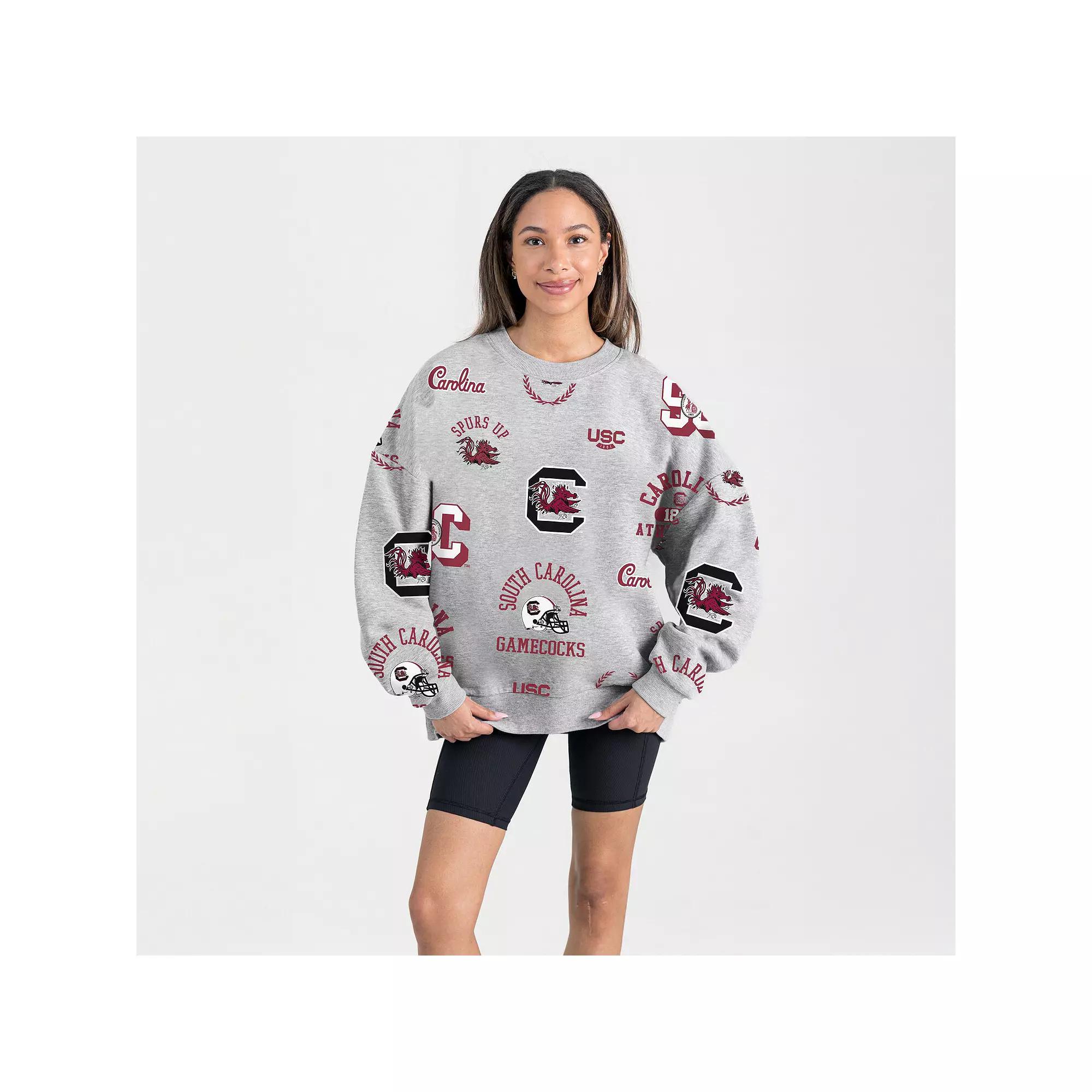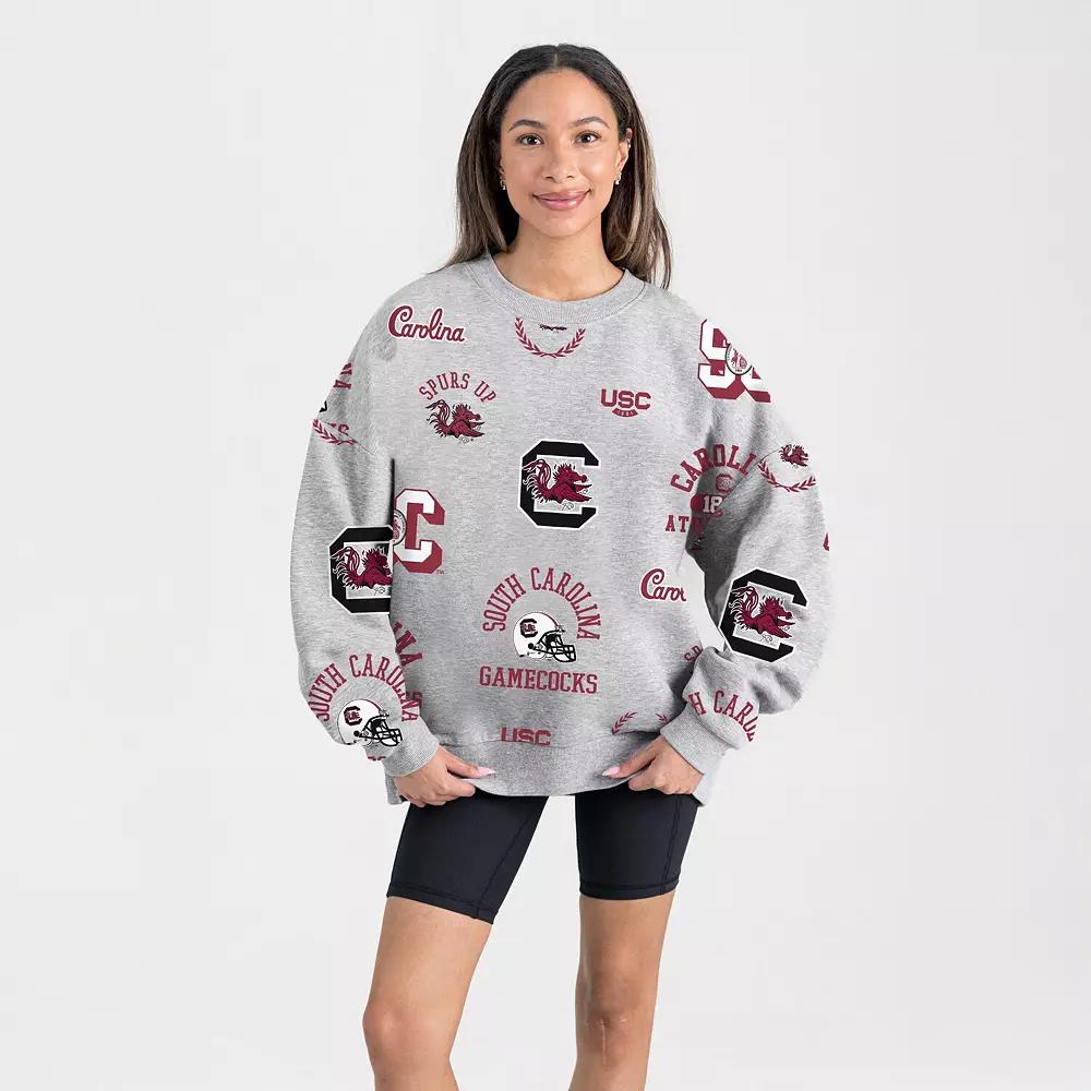 Wrap yourself in comfort and South Carolina Gamecocks team spirit with this Gameday Couture Always on Repeat Fleece Sweatshirt. Perfect for moderate temperatures, it features a relaxed fit and drop shoulders, giving you a loose and roomy feel. The cozy, premium fleece lining and rib-knit cuffs ensure you stay warm and snug while the allover screen-print graphics let your team pride shine with every touchdown. This is the perfect sweatshirt for repping your South Carolina Gamecocks in pure, laid-back style. Drop shoulders for comfortable movement and effortless style. Crew neck. Cozy, premium fleece lining. Machine wash, tumble dry low. Brand: Gameday Couture. Screen-print team graphics allover. Pullover. Model is wearing a size S and is 5'4. Imported. Midweight sweatshirt suitable for moderate temperatures. Rib-knit cuffs, waistband and neckline for a snug fit. Long sleeve. Relaxed Fit: Loose and roomy across the chest, shoulders and body. Officially licensed. Material: 60% Cotton/40% Polyester. Color: Grey. Gender: female. Age Group: adult.