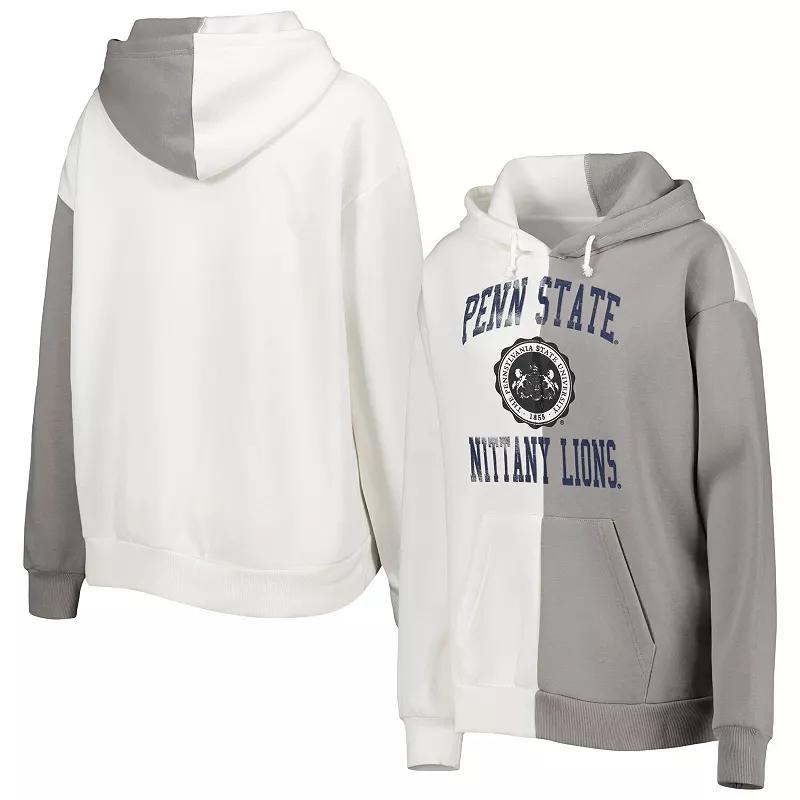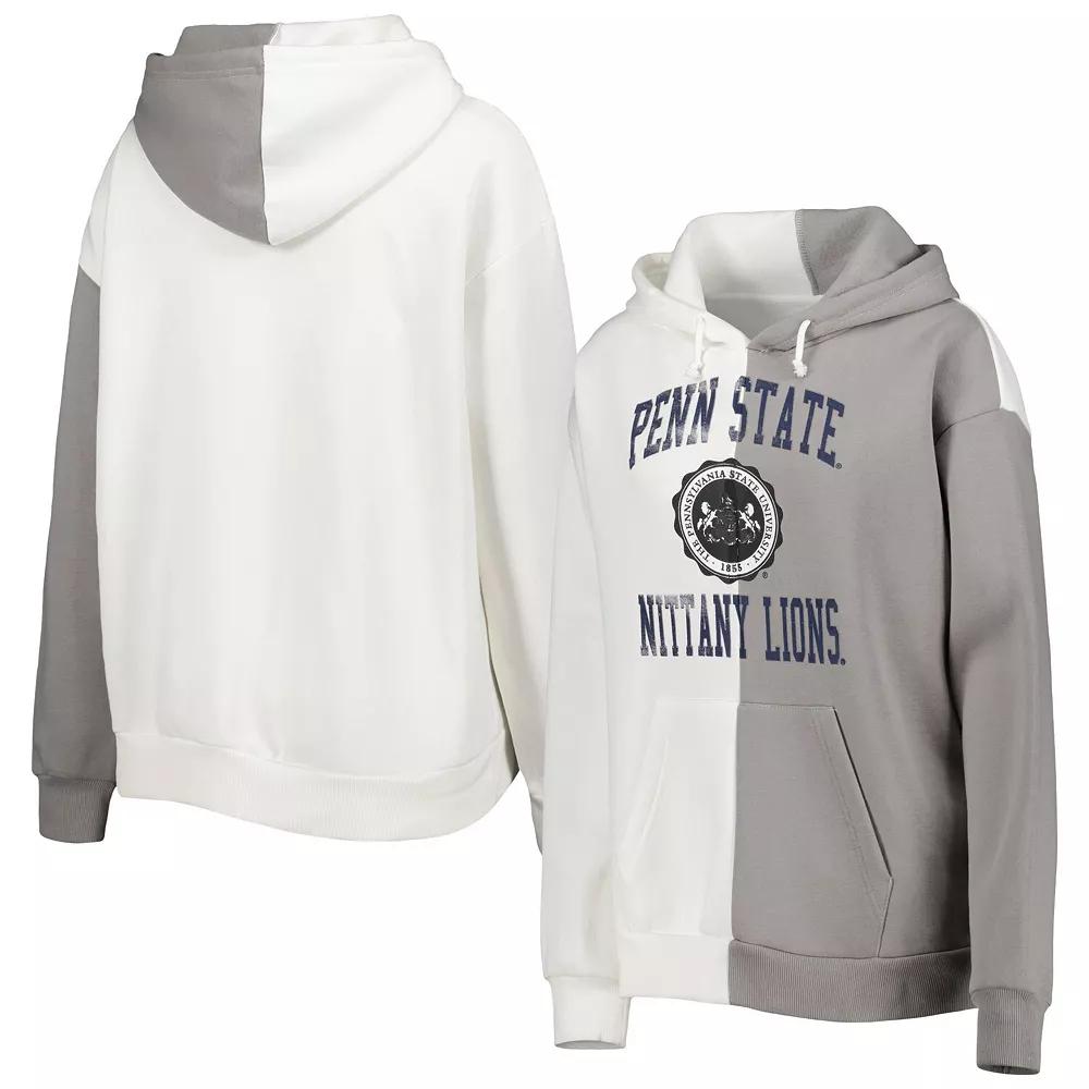 Women's Gameday Couture Gray/White Penn State Nittany Lions Split Pullover Hoodie,