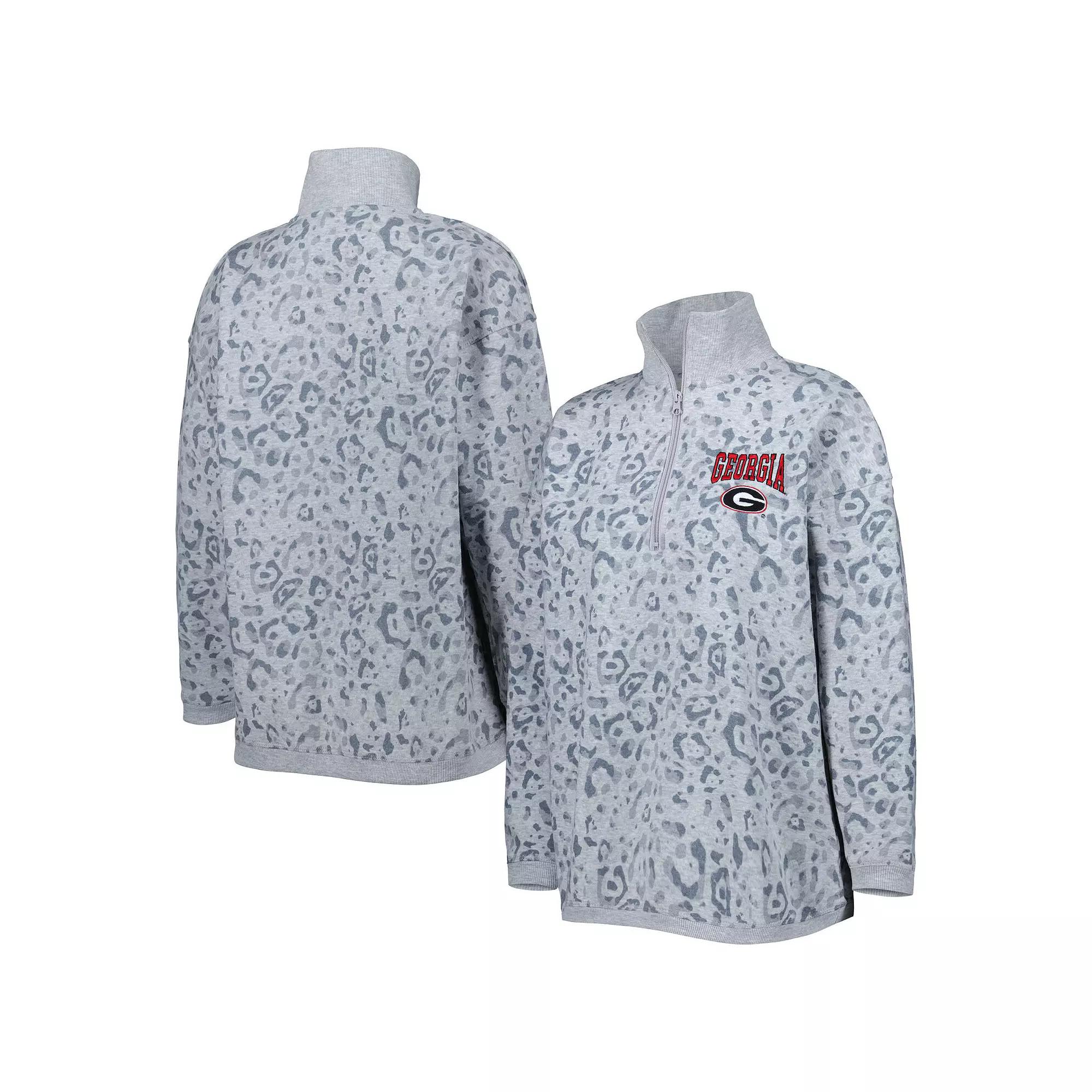 A perfect combination of style and team spirit, this Gameday Couture quarter-zip sweatshirt is sure to stand out in your Georgia Bulldogs gear. The allover leopard design offers a unique twist, making it a fitting focal point in any game day ensemble. Plus, embroidered Georgia Bulldogs graphics ensure everyone knows where your loyalty lies, while fleece lining offers added comfort when its time to layer up.A perfect combination of style and team spirit, this Gameday Couture quarter-zip sweatshirt is sure to stand out in your Georgia Bulldogs gear. The allover leopard design offers a unique twist, making it a fitting focal point in any game day ensemble. Plus, embroidered Georgia Bulldogs graphics ensure everyone knows where your loyalty lies, while fleece lining offers added comfort when its time to layer up.PRODUCT FEATURESMachine wash, tumble dry lowOfficially licensedMaterial: 65% Polyester/35% CottonMock neckFleece liningLightweight sweatshirt suitable for moderate temperaturesImportedLong sleeveEmbroidered graphicsQuarter-zipBrand: Gameday Couture Color: UGA GREY. Gender: female. Age Group: adult.