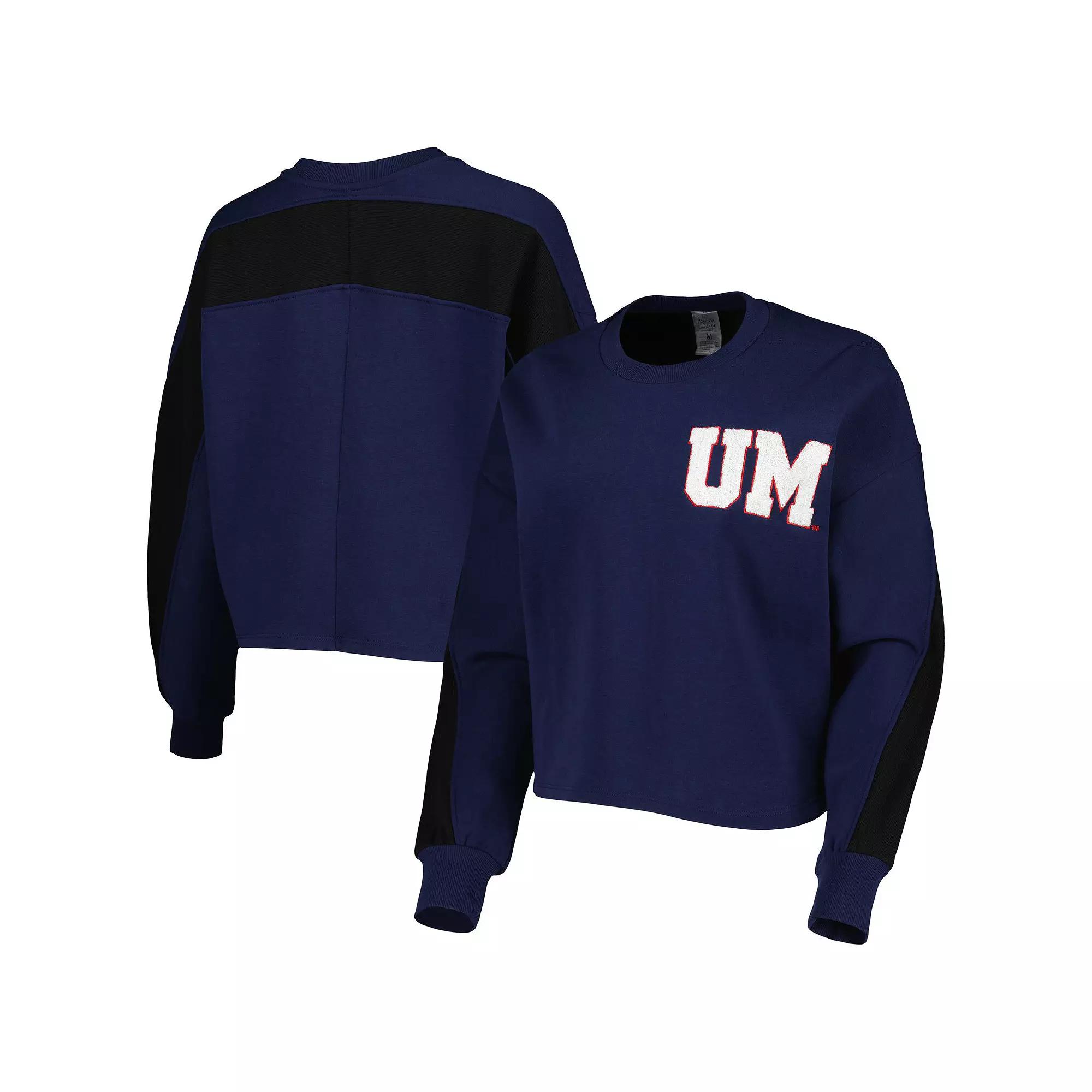Gear up for Michigan Wolverines game day by throwing on this Back to Reality Colorblock pullover sweatshirt from Gameday Couture. It features a unique chenille applique of the team's logo, which helps your die-hard fandom stand prominent. The fleece lining inside of this midweight top will allow you to support the Michigan Wolverines comfortably when the temperature starts to drop.Gear up for Michigan Wolverines game day by throwing on this Back to Reality Colorblock pullover sweatshirt from Gameday Couture. It features a unique chenille applique of the team's logo, which helps your die-hard fandom stand prominent. The fleece lining inside of this midweight top will allow you to support the Michigan Wolverines comfortably when the temperature starts to drop.Rib-knit collar and cuffsBack yoke and top sleeve insetImportedOfficially licensedMachine wash, tumble dry lowLong sleeveCrew neckMaterial: 52% Cotton/48% PolyesterBrand: Gameday CoutureFleece liningMidweight sweatshirt suitable for moderate temperaturesEmbroidered fabric applique with chenille and raised detailPulloverCropped hem Size: XS. Color: Navy. Gender: female. Age Group: adult.