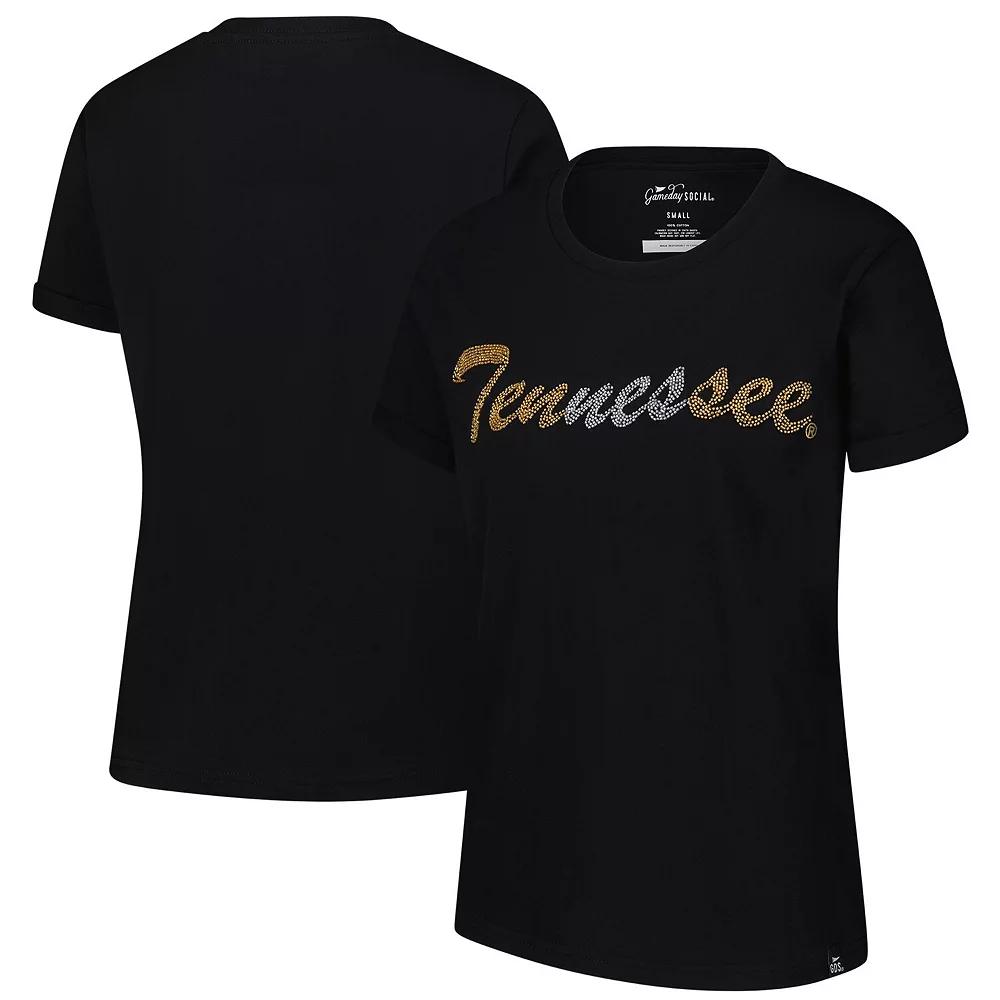 Add some glitz to your Tennessee Volunteers game day attire with this Hand Sewn Beaded Script T-Shirt from Gameday Social. This classic crew neck tee is incredibly comfortable for all-day wear, making it a perfect choice for game day or any casual outing. The hand-sewn beaded script graphics add a touch of elegance and elevate this tee, making it a unique and stylish way to show your Tennessee Volunteers pride.Add some glitz to your Tennessee Volunteers game day attire with this Hand Sewn Beaded Script T-Shirt from Gameday Social. This classic crew neck tee is incredibly comfortable for all-day wear, making it a perfect choice for game day or any casual outing. The hand-sewn beaded script graphics add a touch of elegance and elevate this tee, making it a unique and stylish way to show your Tennessee Volunteers pride.PRODUCT FEATURESMaterial: 100% CottonImportedShort sleeveBrand: Gameday SocialHand-sewn beaded scriptgraphicsHand wash, dry flatOfficially licensedCrew neck provides a traditional look and is comfortable to wear all day Color: Black. Gender: female. Age Group: adult.