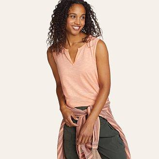 Natural cotton is blended with Tencel® lyocell to create the extraordinary comfort of this sleeveless tunic. Known for its strength, ultrasoft texture, breathability, and wrinkle-resistance, Tencel lyocell is actually a forest product, derived from the cellulose in wood pulp. Its exceptional comfort and easy-care convenience combine beautifully with the cotton in this tunic to make it a superior choice for warm-weather travel.