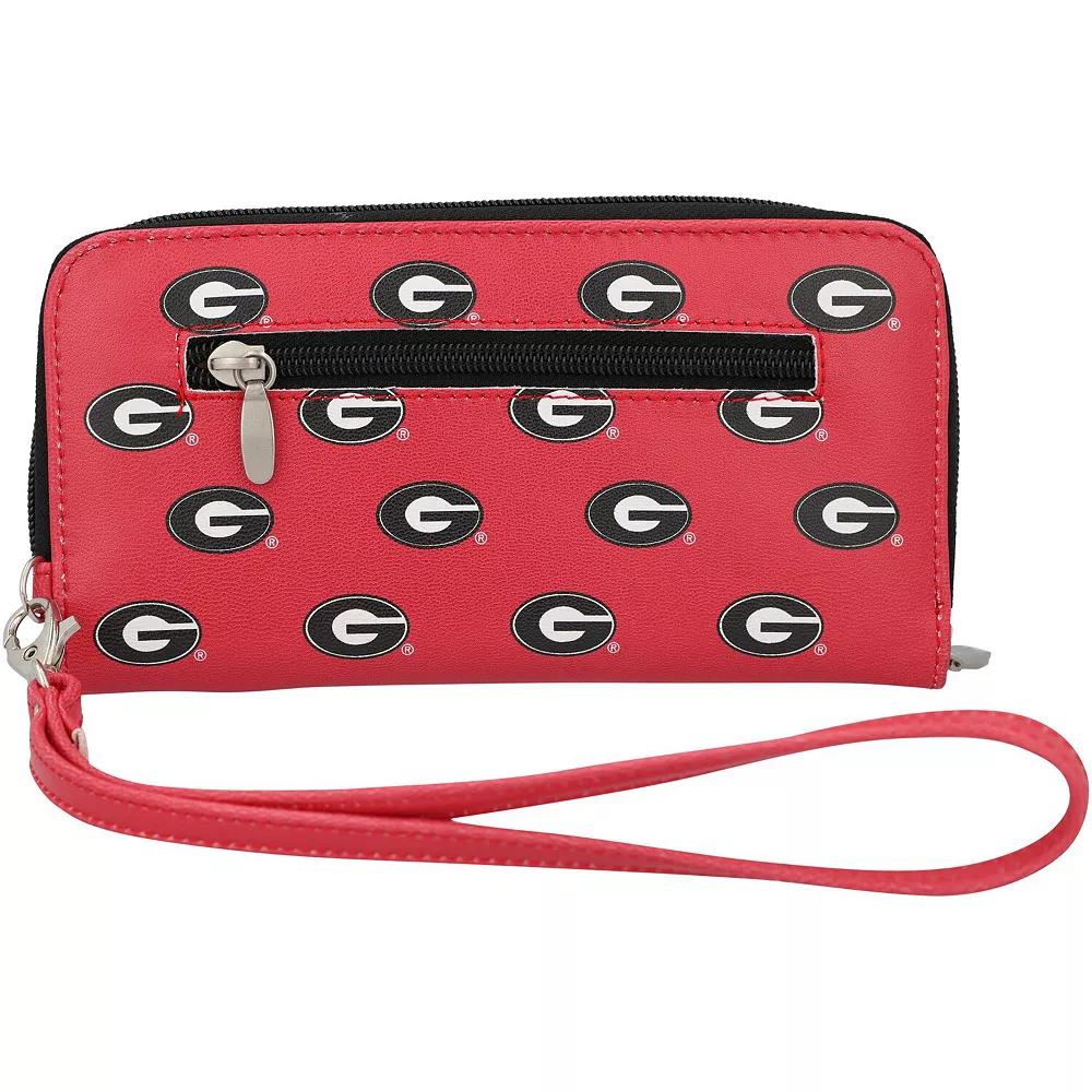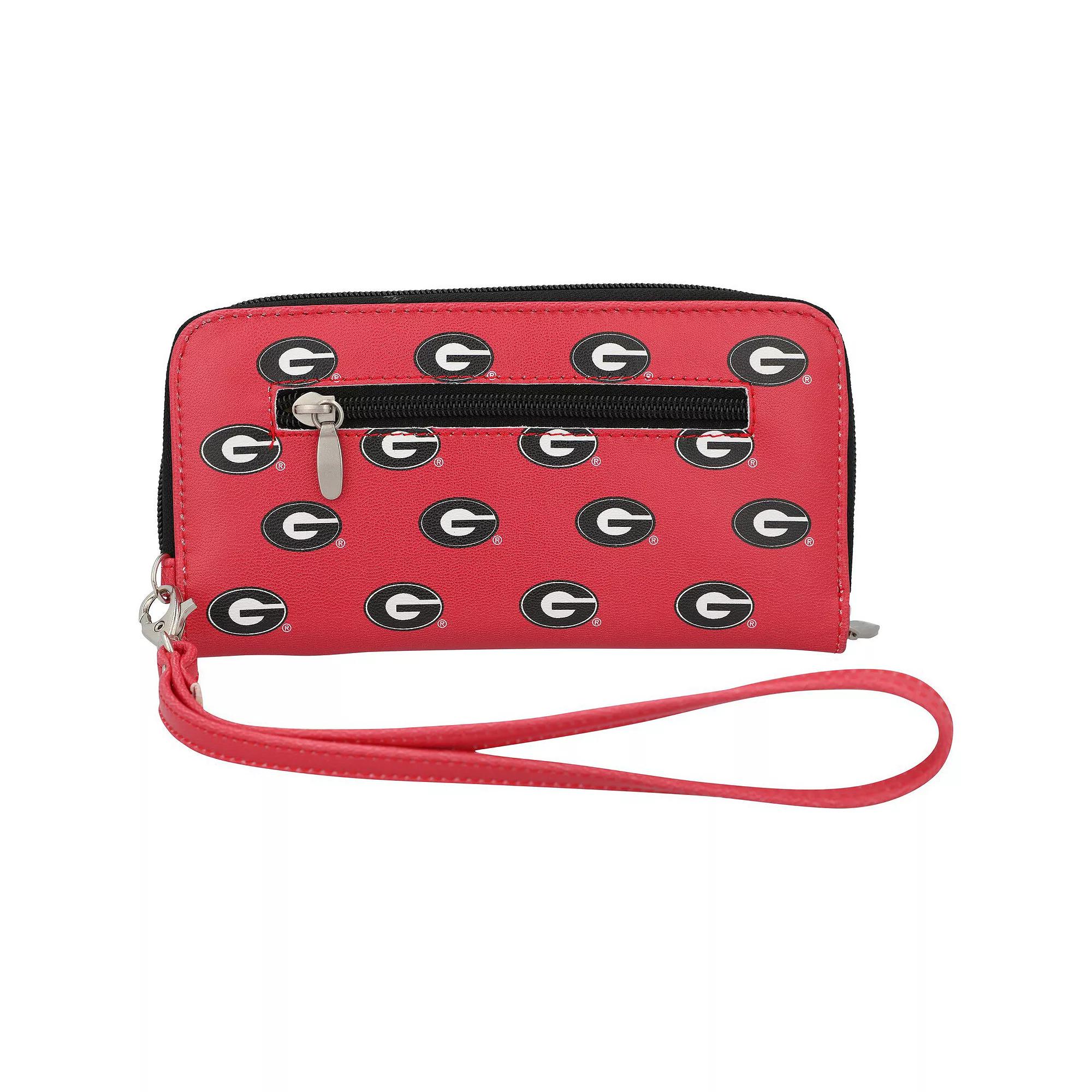 Even your every day accessories can show off unwavering Georgia Bulldogs spirit with this wristlet wallet. It features eight credit card slots, two bill slots and a cellphone slot, making it easy to carry all of your game day essentials. The zip-around closure helps keep your valuables safe while youre cheering on the Georgia Bulldogs.Even your every day accessories can show off unwavering Georgia Bulldogs spirit with this wristlet wallet. It features eight credit card slots, two bill slots and a cellphone slot, making it easy to carry all of your game day essentials. The zip-around closure helps keep your valuables safe while youre cheering on the Georgia Bulldogs.ImportedMaterial: 100% Synthetic LeatherOfficially licensedWipe clean with a damp clothBrand: Eagles WingsOne cellphone slotMeasures approx. 4 x 1 x 7.5Eight credit card slotsZip-around closureDetachable wrist strap with lobster claw closurePrinted graphicsTwo bill slotsOne interior zip pocketOne exterior zip pocket Size: One Size. Gender: female. Age Group: adult.