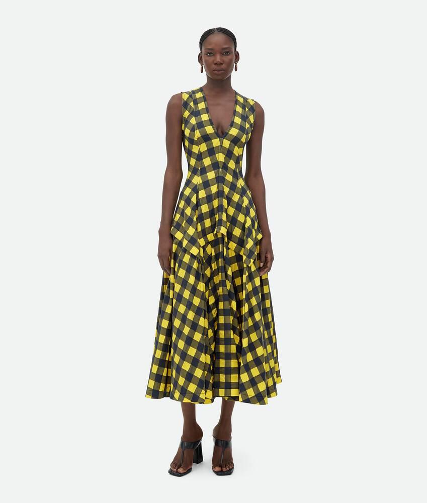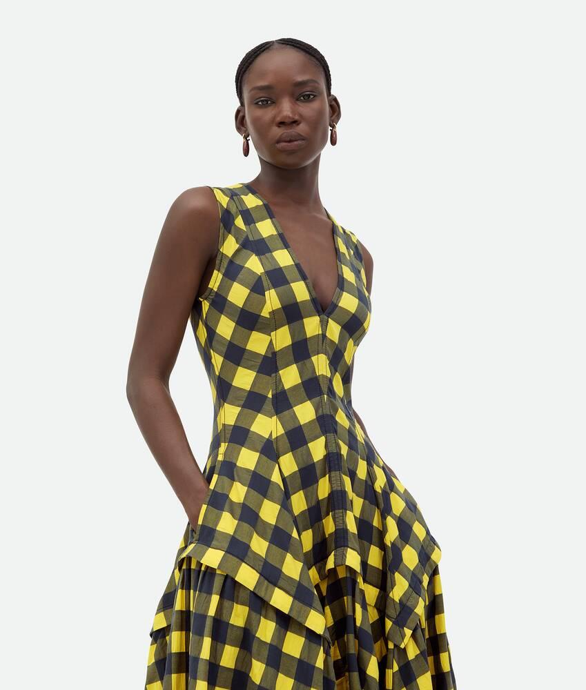 Women's Gingham Cotton Dress in Yellow/shrub/wave