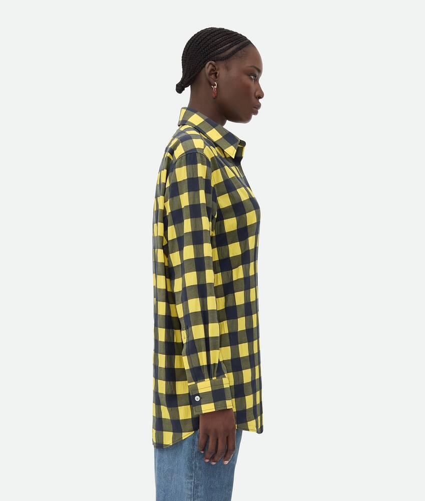Women's Gingham Cotton Shirt in Yellow/shrub/wave