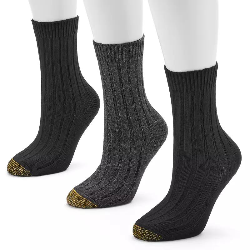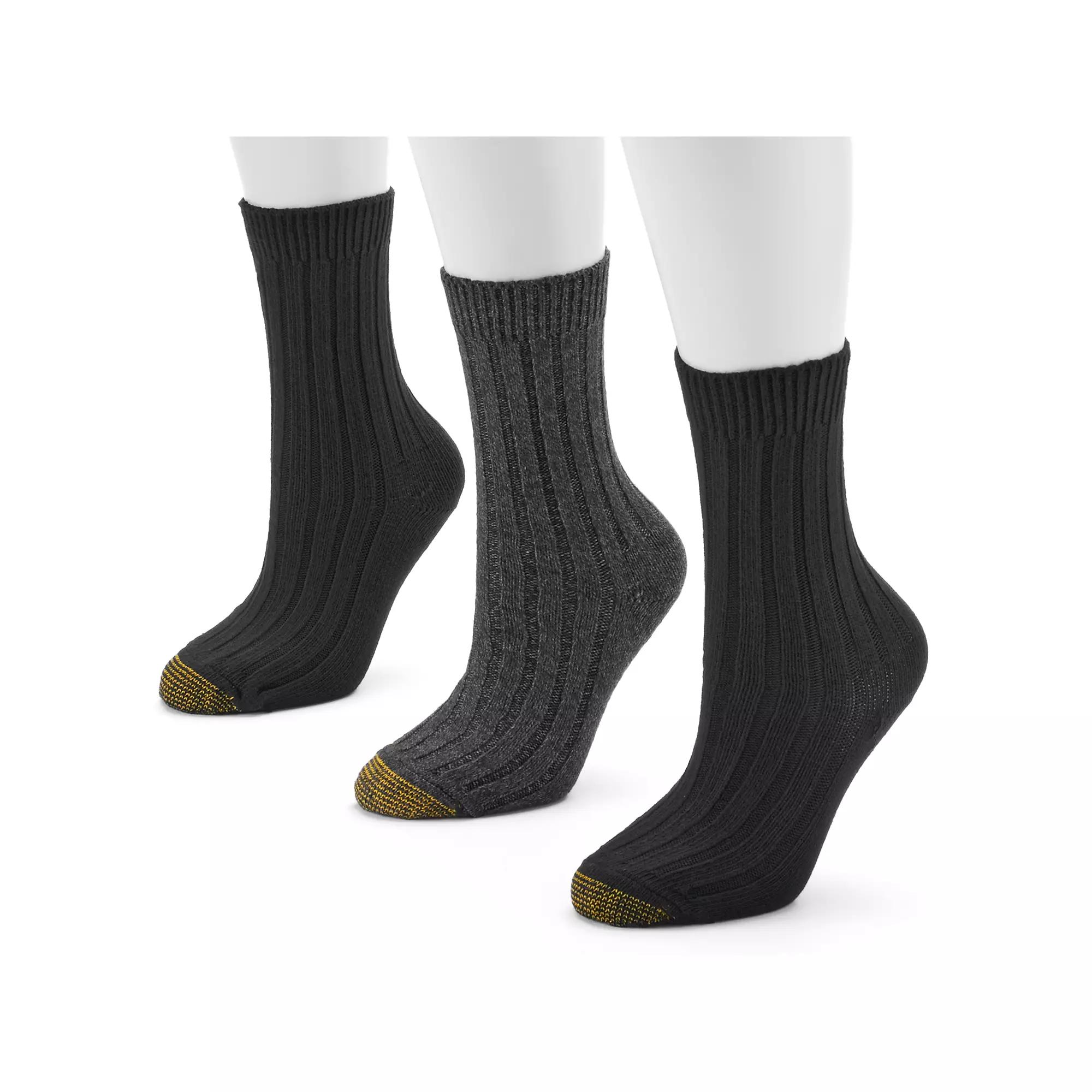 Stay cozy and comfortable in these women's GOLDTOE crew socks. SHOE FEATURES 3-pack Combed cotton construction Chunky-knit design SHOE CONSTRUCTION Crew styling Fits shoe sizes 4-10 SHOE DETAILS Cotton, nylon, spandex Machine wash Imported Size: 9-11....