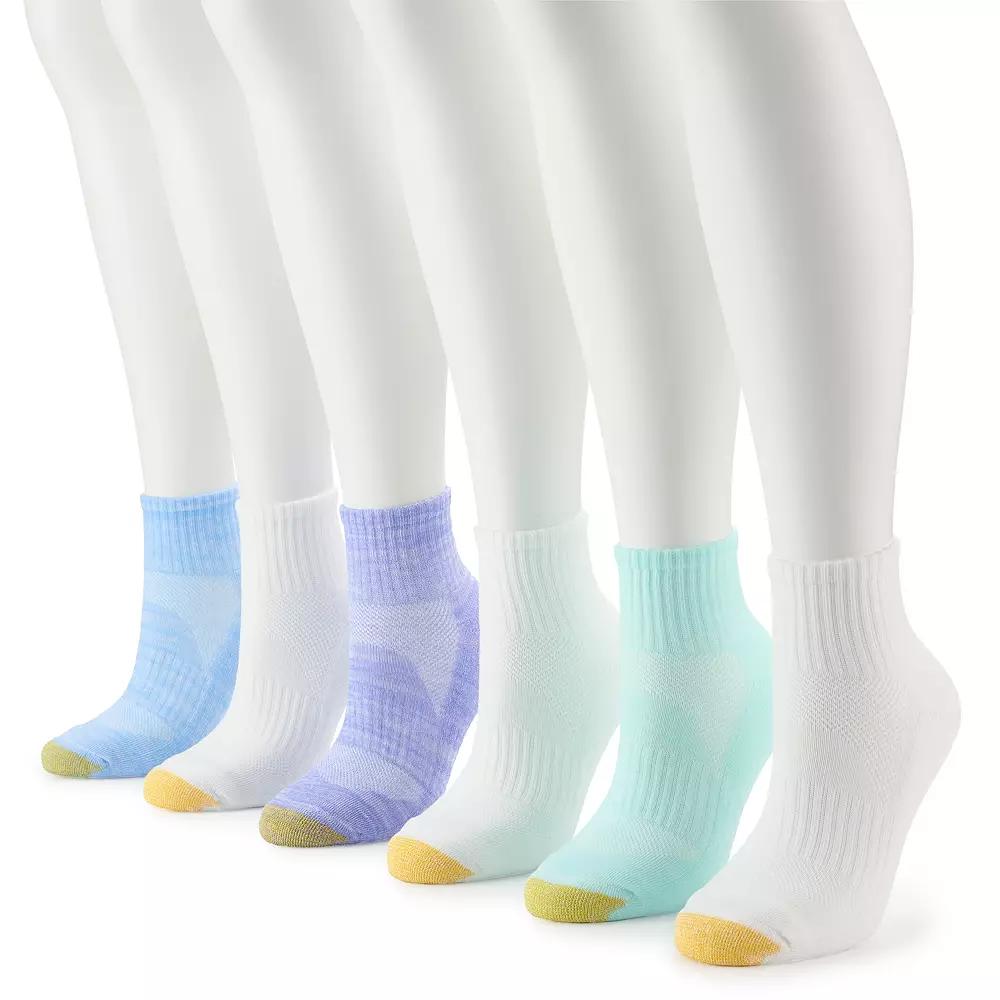 Kick up your feet with confidence when you're wearing these comfy women's quarter socks from GOLDTOE. How do you accessorize? Check out our ACCESSORIES GUIDE for essential tips to elevate your style with must-have accessories. - https://www.kohls.com/feature/accessories-guide.jsp. FEATURES: 6-pack, AquaFX moisture-wicking, Mobility FX Comfort in Motion, Sewn cuffs, Mesh air flow panel, Cushioned comfort sole. FIT & SIZING: True fit heel, Quarter length, Fits shoe sizes 6-9. FABRIC & CARE: Polyester, spandex, Machine wash, Imported. Size: 9-11. Color: White. Gender: female. Age Group: adult. Material: POLY / COTTON.