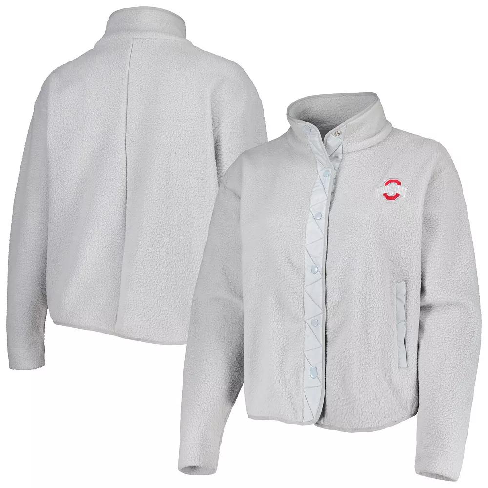 Keeping comfortable in cooler temperatures is just part of your wheelhouse, so let it be known by grabbing this Ohio State Buckeyes Wheelhouse full-snap jacket. It features embroidered Ohio State Buckeyes graphics that make your dedication to your favorites unmistakable. In addition, the Sherpa fabric offers a comforting feel, while the rounded droptail hem provides the right fit at the waist.Keeping comfortable in cooler temperatures is just part of your wheelhouse, so let it be known by grabbing this Ohio State Buckeyes Wheelhouse full-snap jacket. It features embroidered Ohio State Buckeyes graphics that make your dedication to your favorites unmistakable. In addition, the Sherpa fabric offers a comforting feel, while the rounded droptail hem provides the right fit at the waist.Sherpa fabricMidweight jacket suitable for moderate temperaturesRounded droptail hemBrand: ProfileOfficially licensedFull-snapMachine wash, tumble dry lowImportedTagless CollarOlympic collarLong sleeveMaterial: 100% PolyesterTwo front pocketsEmbroidered graphics Size: 1X. Color: Grey. Gender: female. Age Group: adult. Material: COTTON.