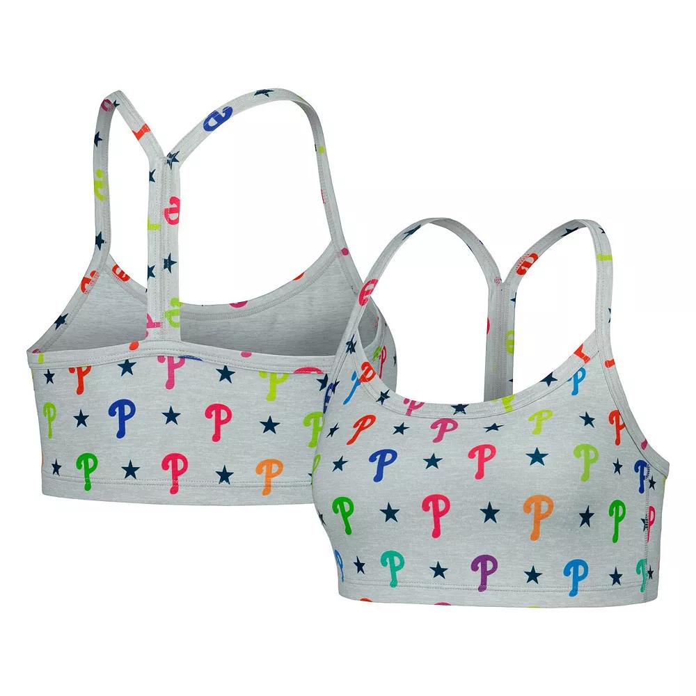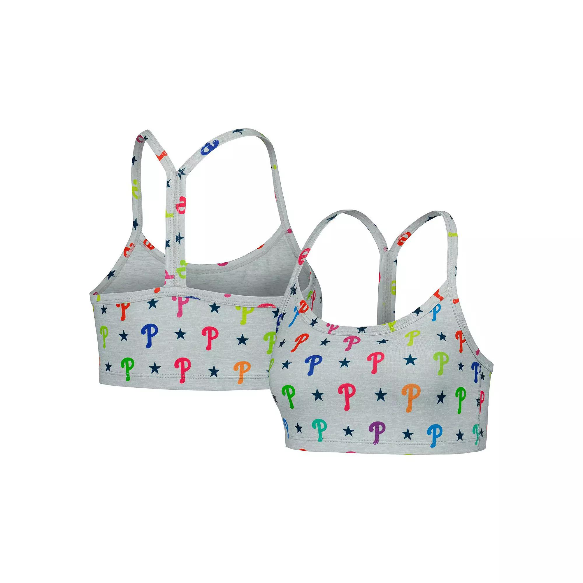 Wear this Philadelphia Phillies TLC Rainbow bra for low-impact workouts or just lounging in total comfort. It features ultra-soft, stretch fabric and wire-free, seamless cups for minimal compression. The Y-back silhouette and scoop neck provide light support that makes this Philadelphia Phillies bra perfect for casual outfits.Wear this Philadelphia Phillies TLC Rainbow bra for low-impact workouts or just lounging in total comfort. It features ultra-soft, stretch fabric and wire-free, seamless cups for minimal compression. The Y-back silhouette and scoop neck provide light support that makes this Philadelphia Phillies bra perfect for casual outfits.Printed graphicsBrand: TerezImportedLight supportOfficially licensedY-backMachine wash, dry flatScoop neckMaterial: 87% Polyester/13% Spandex Size: XS. Color: Grey. Gender: female. Age Group: adult. Material: COTTON.