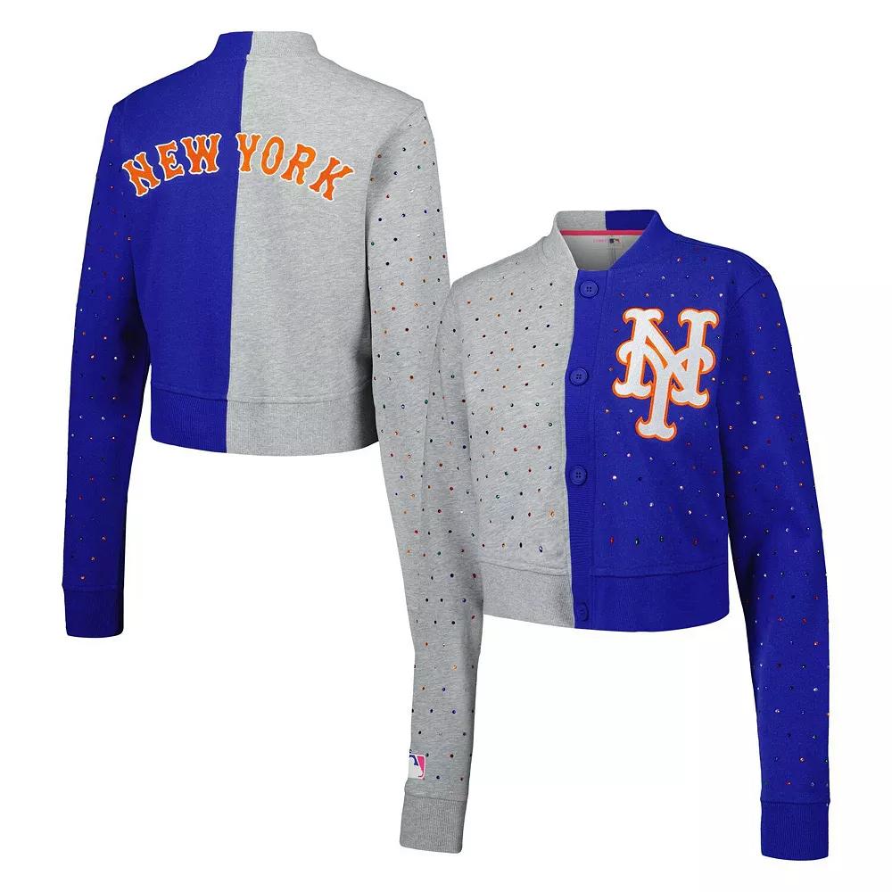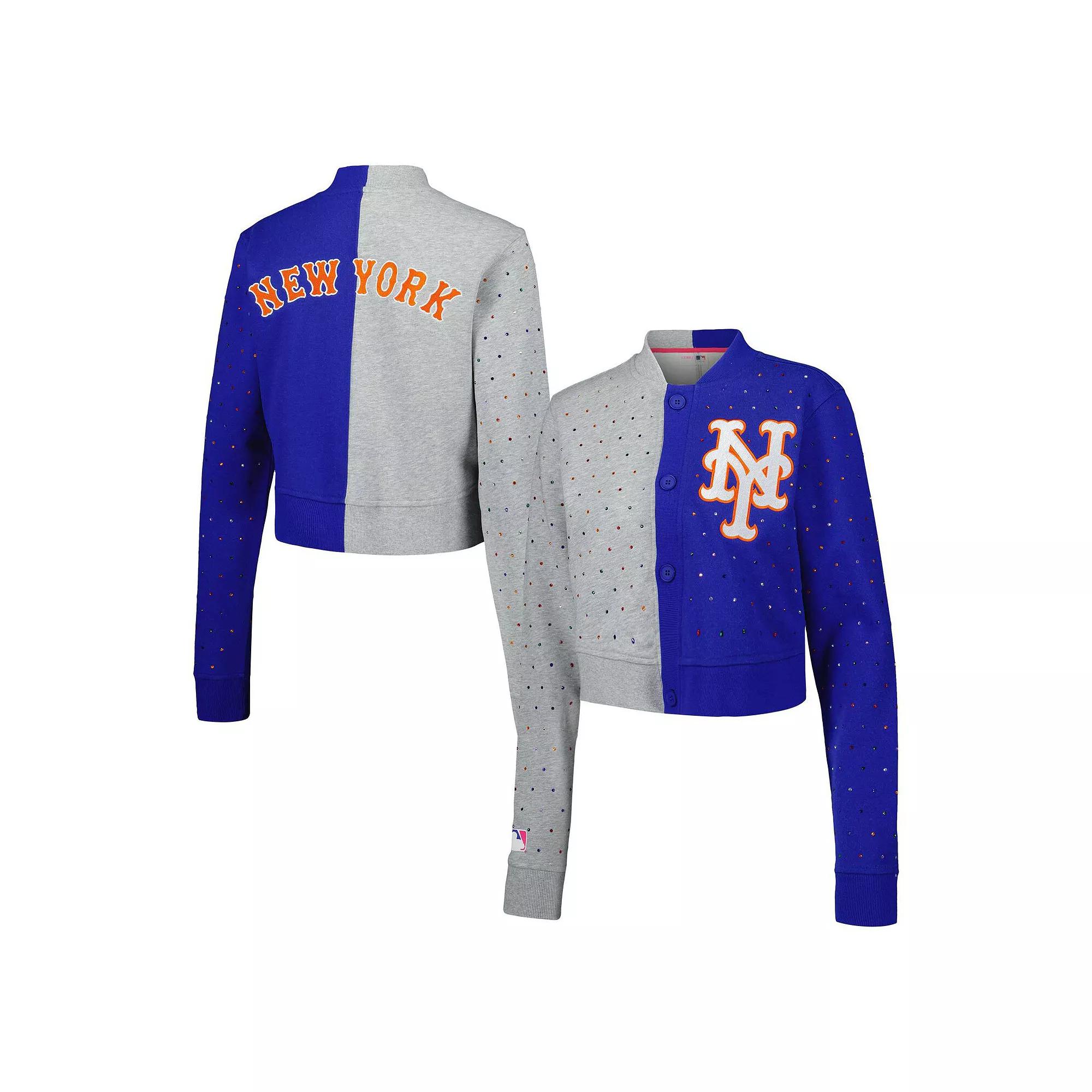 Layer up on game day with this charming New York Mets button-up cardigan. It's made with soft French terry fabric and a cropped hem for added appeal. The two-tone New York Mets design is embellished with dazzling rhinestones and bold logos for a stylish take on your team spirit.