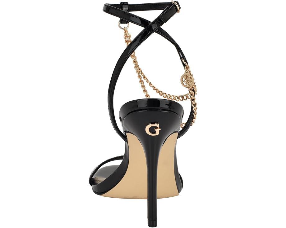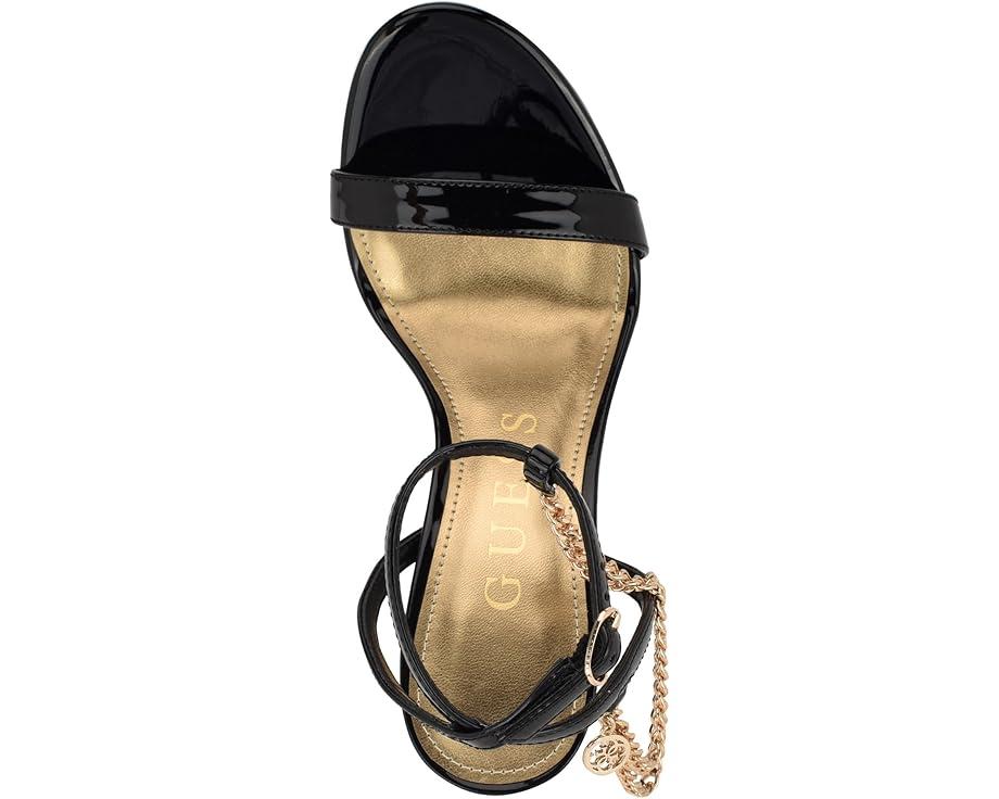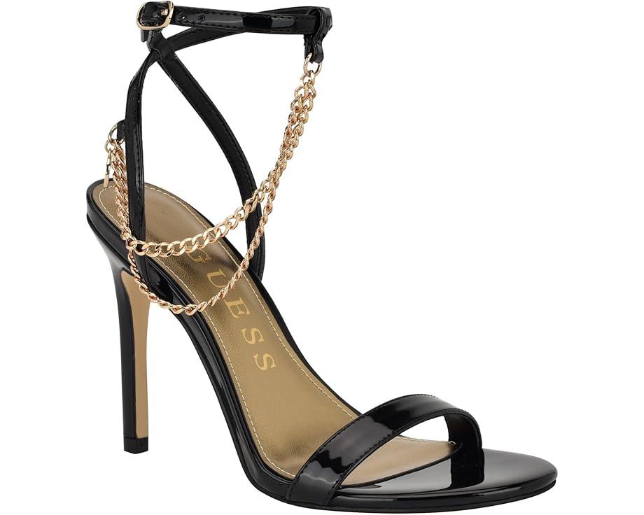 Detailed with a delicate chain, the GUESS® Miamy is ready for a night out on the town. This stiletto heel gives a sophisticated look with a sleek buckle adjustable ankle strap closure.