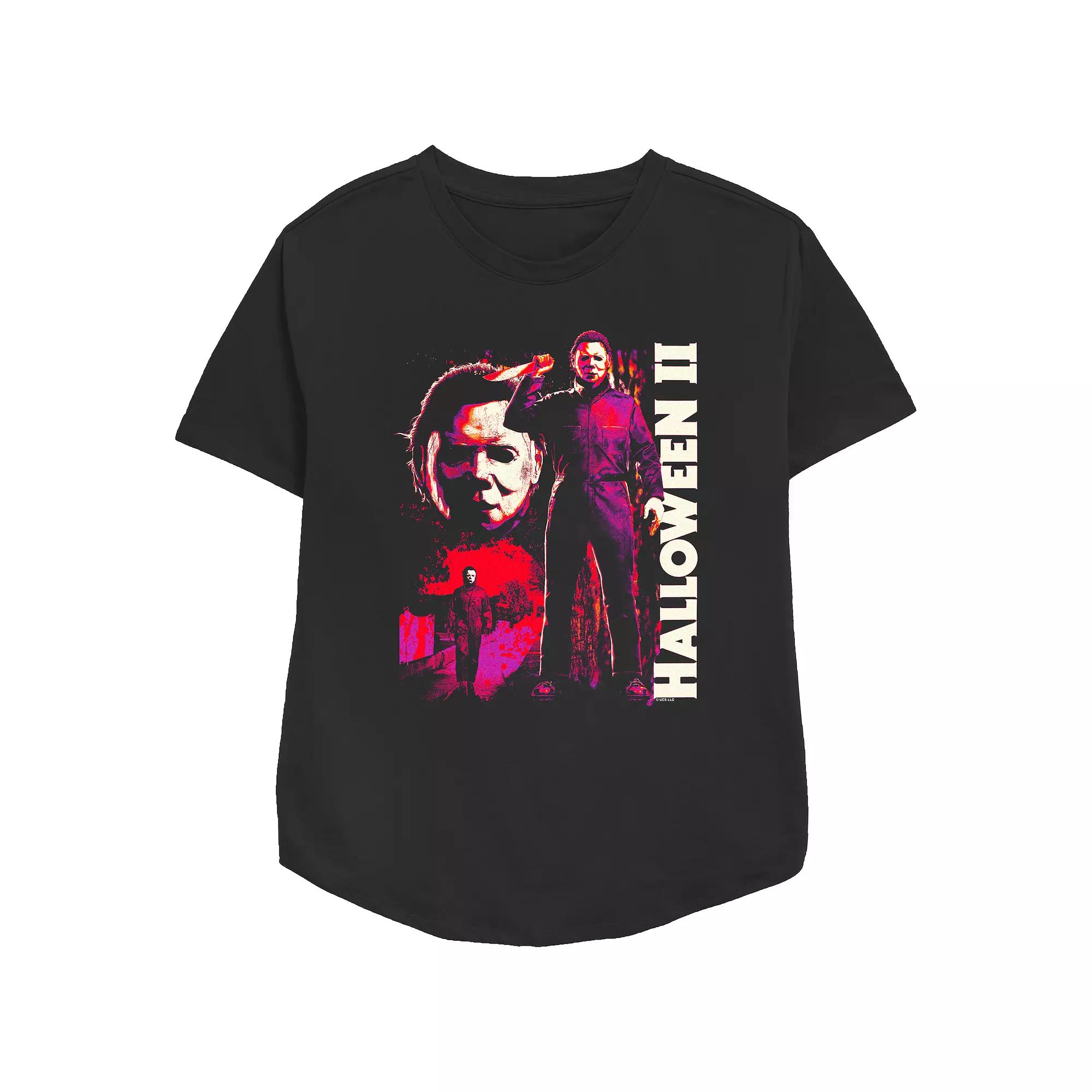 Shell love getting into the spooky spirit of the season with this Womens Halloween II Michael Myers Relaxed Fit Graphic Tee. FEATURES Crewneck Short sleevesFABRIC & CARE Cotton, polyester Machine wash Imported Size: Large. Color: Black. Gender: female. Age Group: adult.