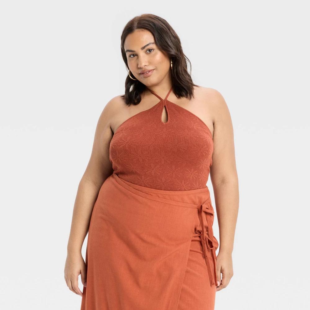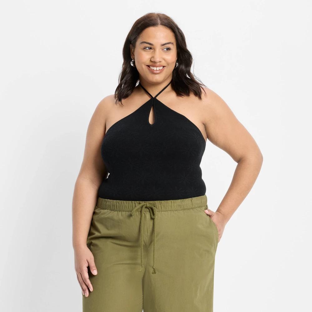 This Halter Sweater Bodysuit from Future Collective is perfect for effortless day-to-night dressing. Made from lightweight viscose-nylon blend fabric, this solid-color bodysuit features a keyhole-front halter neckline with behind-the-neck ties for a customizable fit, and adjustable crotch snaps for ease of wear and personalized comfort. Whether styled solo with skirts, jeans or trousers, or layered under a blazer, this wardrobe staple seamlessly transitions from casual brunches and coffee dates to date-night plans. Future Collective™: Inspired by what’s now to inform what’s next.