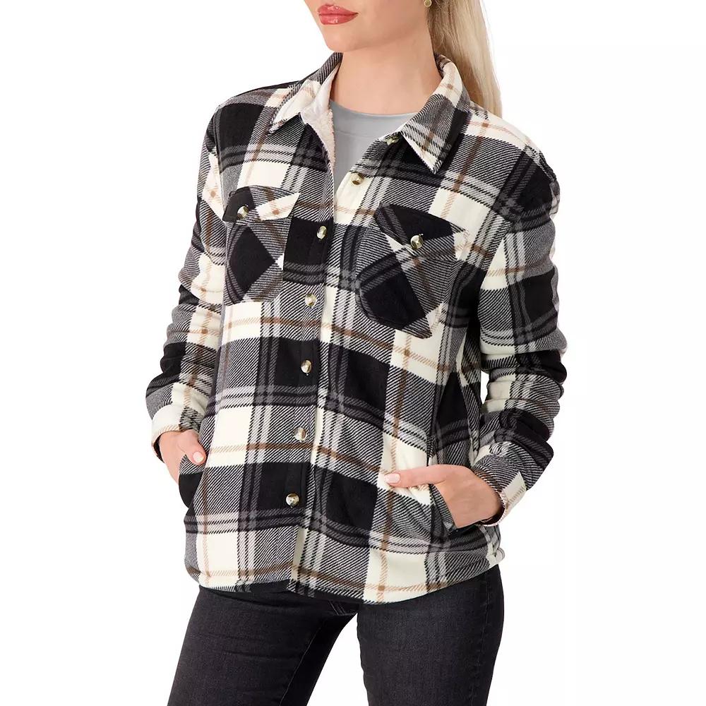 Cozy up in this womens Heatweaver Lined Fleece Shacket from Heat Holders.Click on this WOMENS GUIDE to find the perfect fit and more! Cozy up in this womens Heatweaver Lined Fleece Shacket from Heat Holders.Click on this WOMENS GUIDE to find the perfect fit and more! FEATURES Midweight warmth rating Button front Long sleeves with button cuffs 2 button pockets, 2 side pockets and 2 internal pockets Partially lined Supersoft Heatweaver lined microfleece constructionFIT & SIZING Regular fit Designed to hit just below the waistFABRIC & CARE Polyester Machine wash and tumble dry low Imported Size: Small. Color: Black Cream. Gender: female. Age Group: adult.