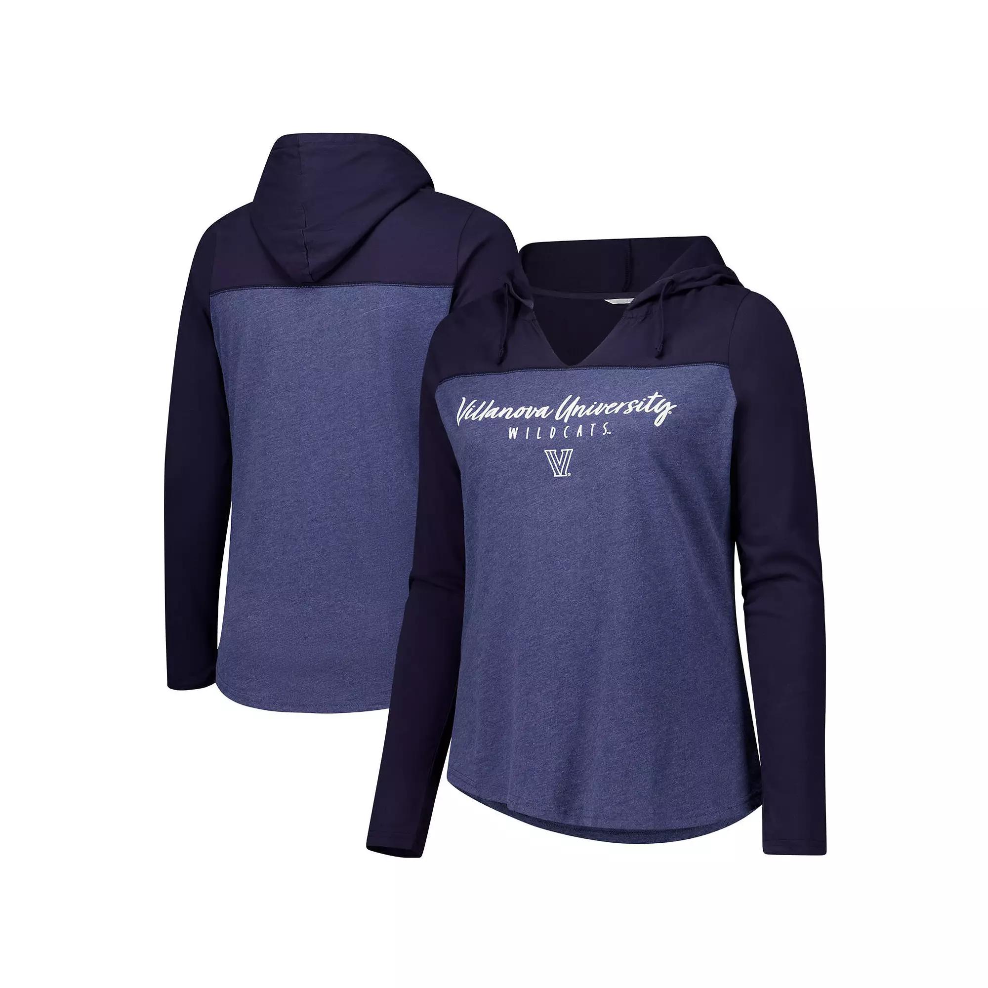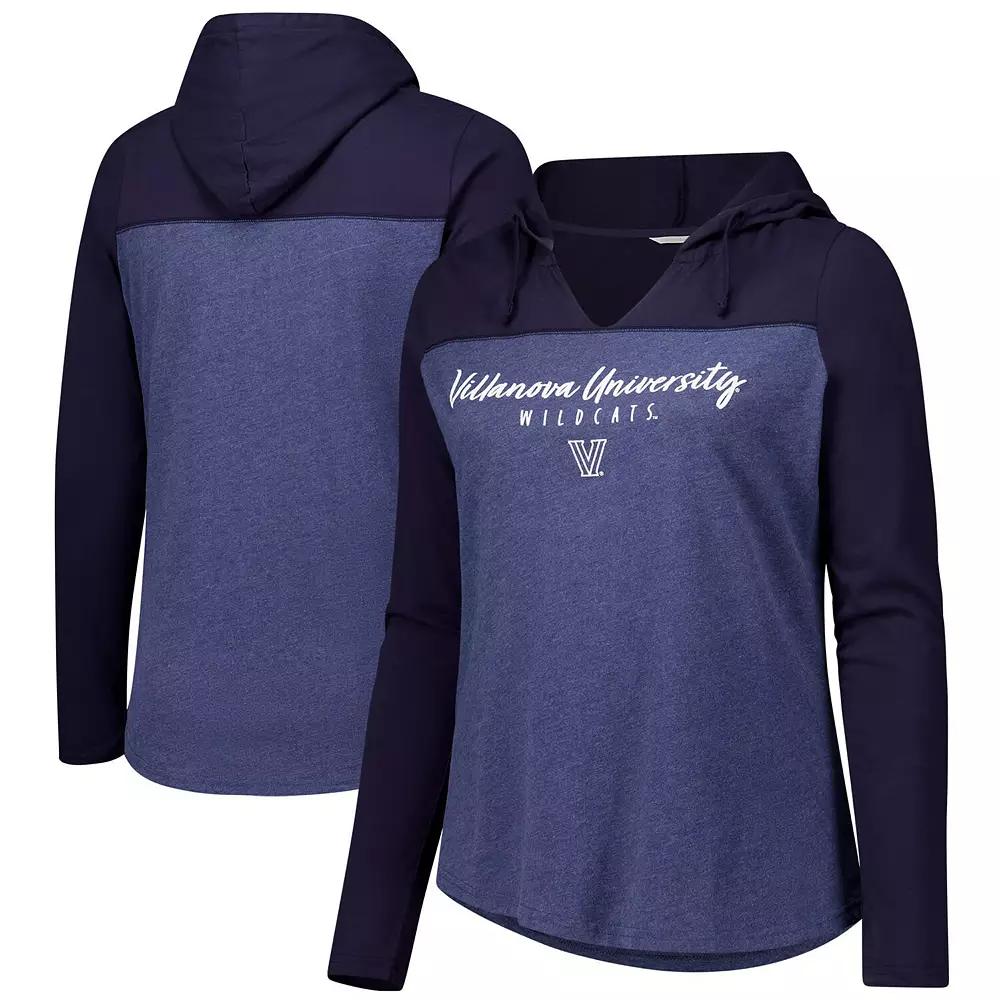Women's Heather Navy Villanova Wildcats Knockout Color Block Hoodie V-Neck Long Sleeve T-Shirt,  Product Image