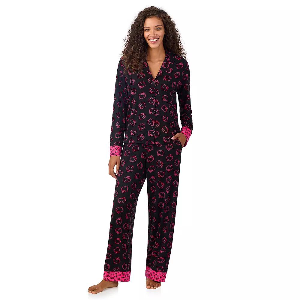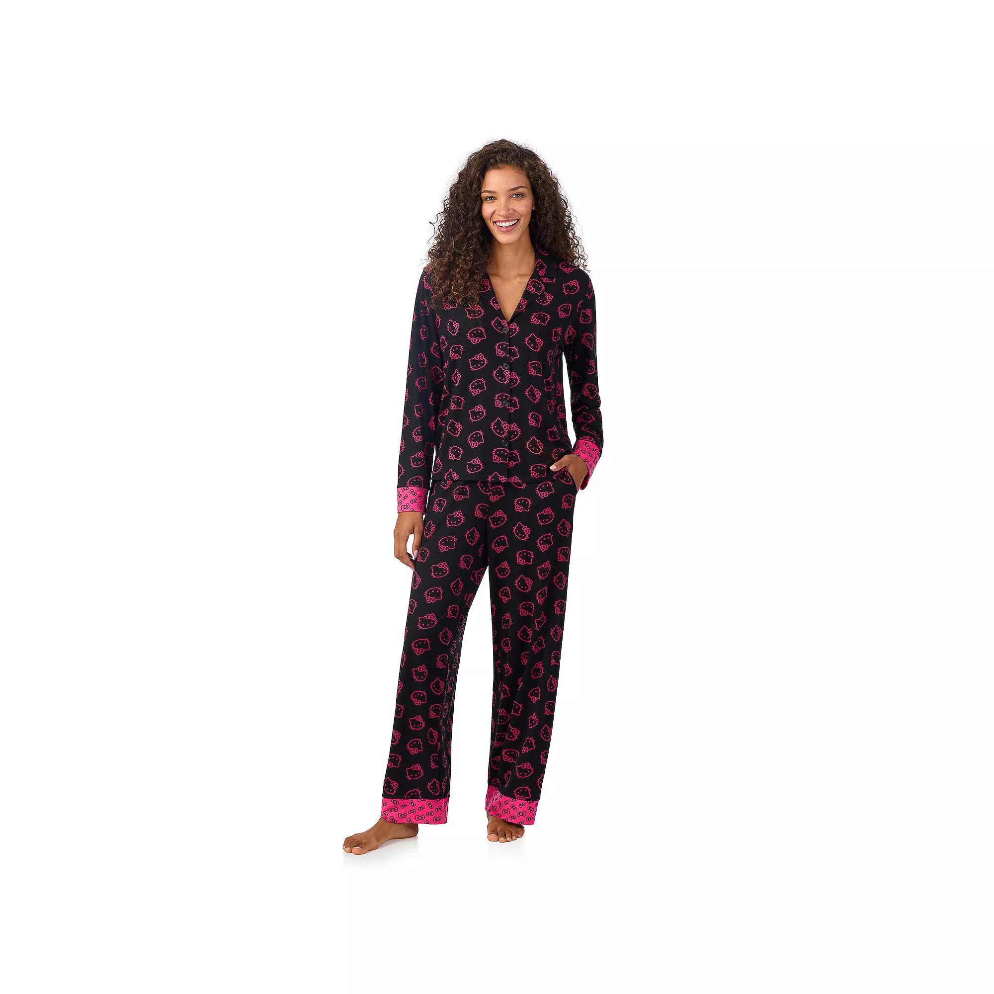 You'll love the cozy, charming style of this women's Hello Kitty pajama top and pajama bottoms set.Click on this WOMEN'S GUIDE to find the perfect fit and more!You'll love the cozy, charming style of this women's Hello Kitty pajama top and pajama bottoms set. Click on this WOMEN'S GUIDE to find the perfect fit and more!FEATURES Set includes top and pants Soft, cozy jersey construction 2 side seam pockets Notchneck Button front Drop-shoulder long sleeves Vented hem UnlinedFIT & SIZING Relaxed fit 30.5-in inseam 20-in leg opening Super high rise sits on the natural waistline Straight leg opening Covered elastic waistbandFABRIC & CARE Polyester, spandex Machine wash and tumble dry low Imported Size: X Small. Color: Black Hello Kitty. Gender: female. Age Group: kids.