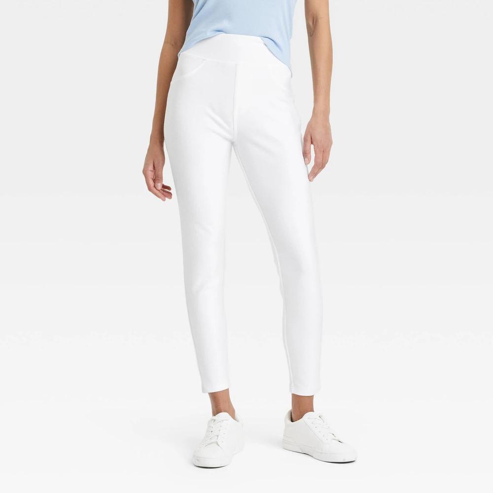 The look of your favorite skinny jeans meets the comfort of stretchy leggings with these High-Waist Jeggings from A New Day. These jeggings are perfect for days where you want to keep your style on point while feeling more comfortable than ever. The wide waistband adds just the right amount of control along with a flattering fit, while the soft fabric construction with spandex provides flexible comfort. Pair them with a loose-fit shirt and ballet flats for an effortlessly chic look, or go casual with a tee and sneakers.