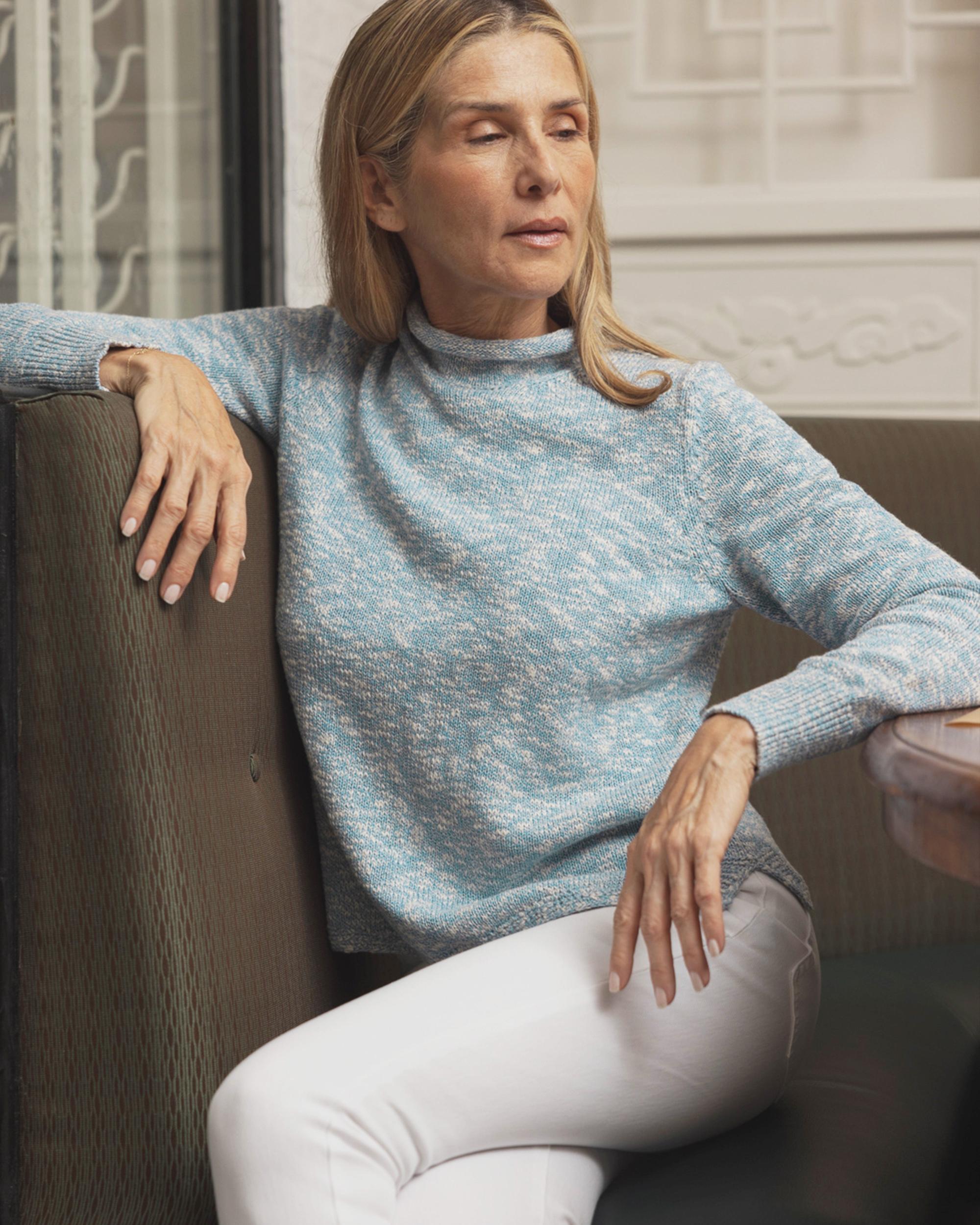 Women's Homespun Fisherman's Sweater in Coastal Blue Marl/Natural