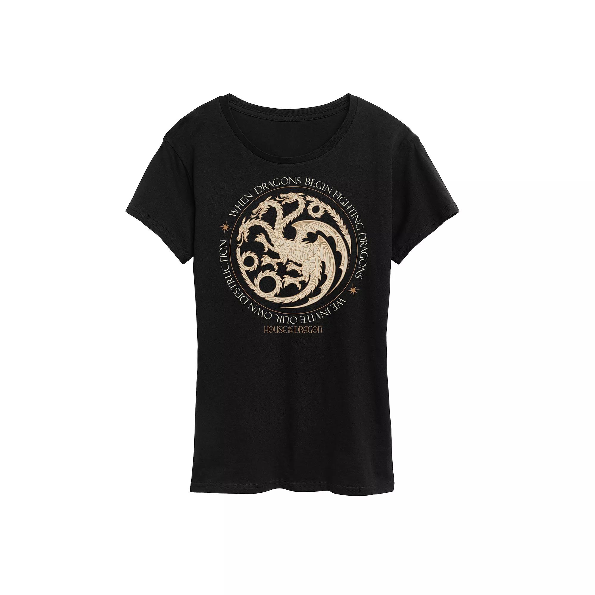 She will love showing off her style with this Womens House of the Dragon Dragons Begin Fighting Graphic Tee. FEATURES Short sleeves CrewneckFABRIC & CARE Solid Color: Cotton ; Heather Colors: Cotton/Polyester Machine wash Imported Size: X Large. Color: Black. Gender: female. Age Group: adult.