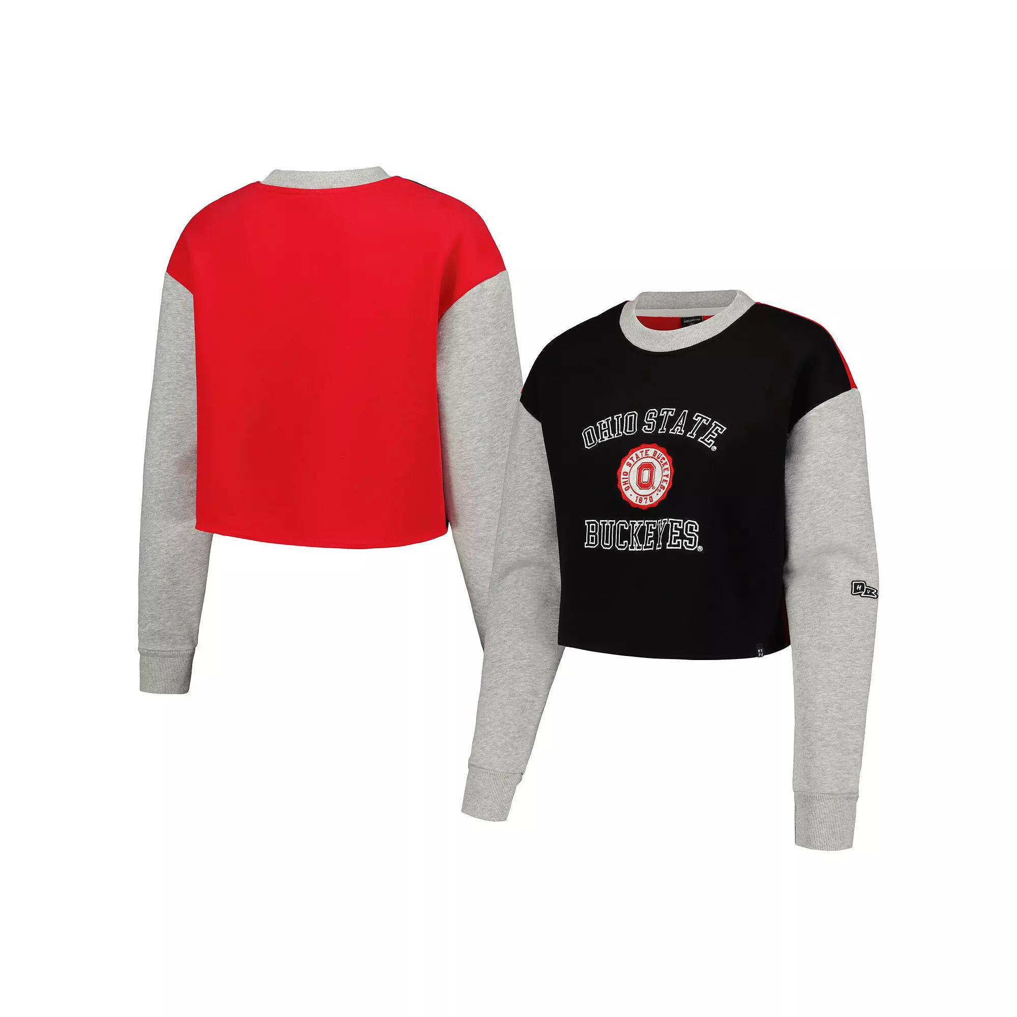 Show your elevated style on the next Ohio State Buckeyes game day in this Colorblock Rookie Crew sweatshirt from Hype and Vice. It features embroidered team graphics, contrast-color sleeves and a cropped, raw-edge hem for a bold look. A comfy fleece lining makes this pullover a warm option to support the Ohio State Buckeyes in chillier weather.Show your elevated style on the next Ohio State Buckeyes game day in this Colorblock Rookie Crew sweatshirt from Hype and Vice. It features embroidered team graphics, contrast-color sleeves and a cropped, raw-edge hem for a bold look. A comfy fleece lining makes this pullover a warm option to support the Ohio State Buckeyes in chillier weather.PRODUCT FEATURESLong sleeveCrew neckOfficially licensedFleece liningMachine wash with garment inside out, tumble dry lowCropped, raw-edge hemMaterial: 50% Cotton/50% PolyesterPulloverEmbroidered graphicsImportedBrand: Hype and ViceMidweight sweatshirt suitable for moderate temperatures Color: Black. Gender: female. Age Group: adult.