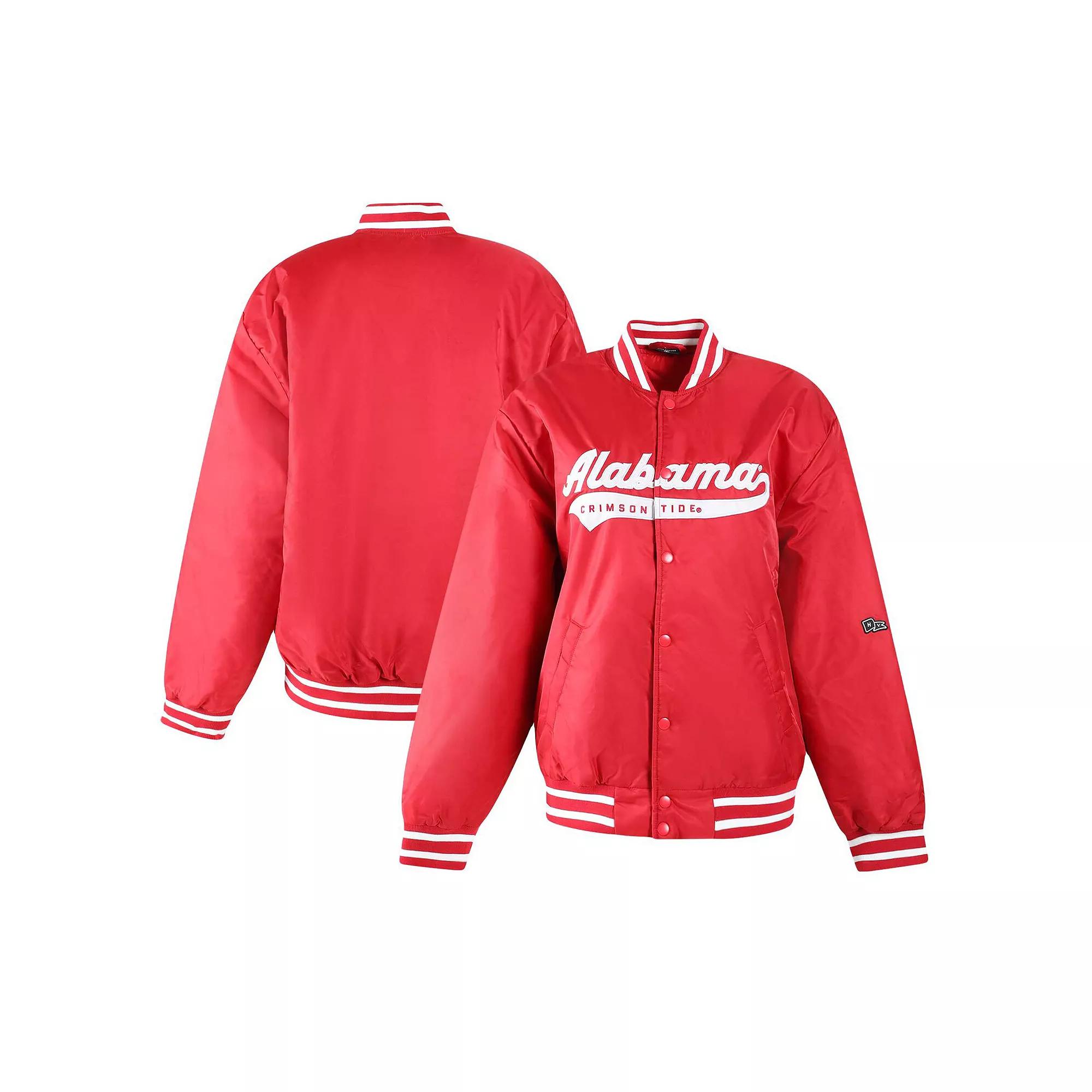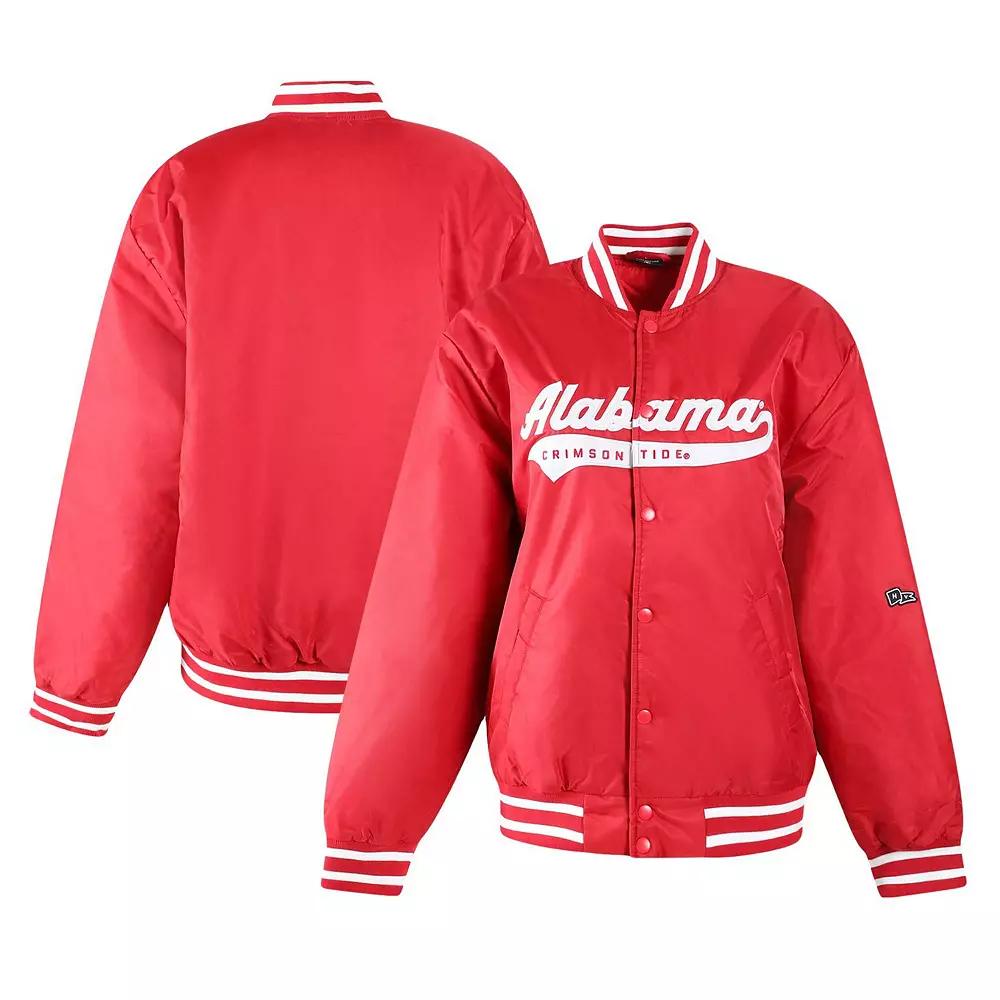 Show off your Alabama Crimson Tide pride with this Hype and Vice A-Game Varsity Jacket. This stylish outerwear features embroidered twill applique graphics at the front center chest, making it a standout piece for any Alabama Crimson Tide fan. The midweight construction is perfect for moderate temperatures, while the striped rib-knit trim at the stand-up collar, cuffs and hem adds a touch of classic athletic style.Show off your Alabama Crimson Tide pride with this Hype and Vice A-Game Varsity Jacket. This stylish outerwear features embroidered twill applique graphics at the front center chest, making it a standout piece for any Alabama Crimson Tide fan. The midweight construction is perfect for moderate temperatures, while the striped rib-knit trim at the stand-up collar, cuffs and hem adds a touch of classic athletic style.PRODUCT FEATURESMaterial: 100% PolyesterFull SnapMachine wash, tumble dry lowStriped rib-knit trim at stand-up collar, cuffs and hemOfficially licensedEmbroidered twill applique graphics at front center chestMidweight jacket suitable for moderate temperaturesImportedBrand: Hype and ViceLong sleeve Gender: female. Age Group: adult.