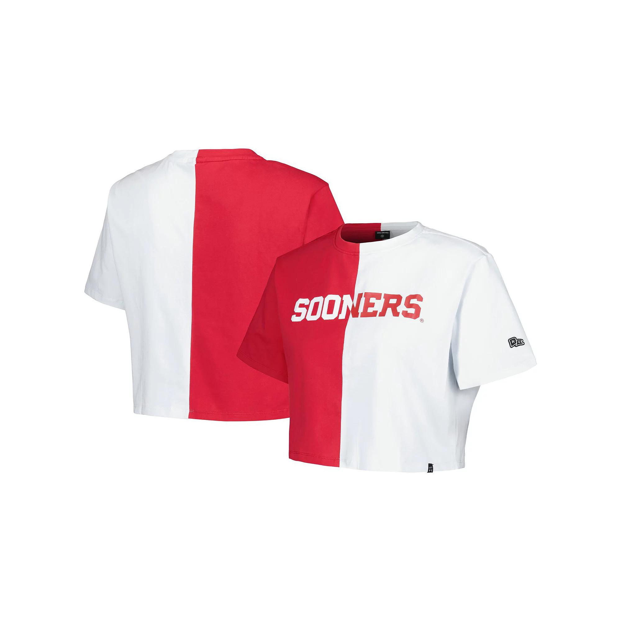 This Brandy T-shirt from Hype and Vice freshly highlights your Oklahoma Sooners spirit. It features a two-tone design with signature Oklahoma Sooners colors and graphics that create a stellar look. A cropped hem adds flair to your game day look.This Brandy T-shirt from Hype and Vice freshly highlights your Oklahoma Sooners spirit. It features a two-tone design with signature Oklahoma Sooners colors and graphics that create a stellar look. A cropped hem adds flair to your game day look.PRODUCT FEATURESBrand: Hype and ViceOfficially licensedImportedMachine wash, tumble dry lowShort sleeveCrew neckMaterial: 95% Cotton/5% SpandexScreen print graphicsCropped hem with side splits Size: M. Color: Red. Gender: female. Age Group: adult.