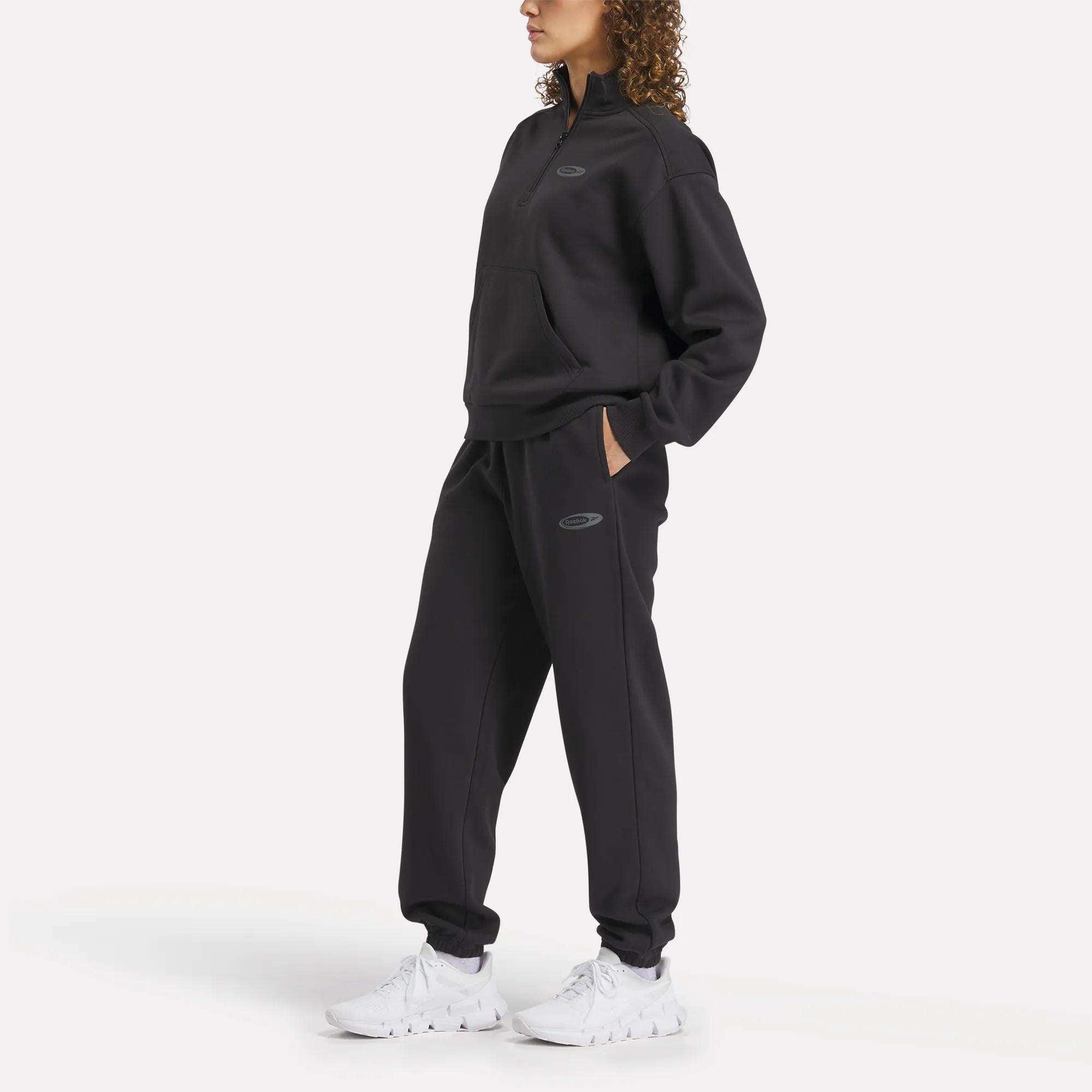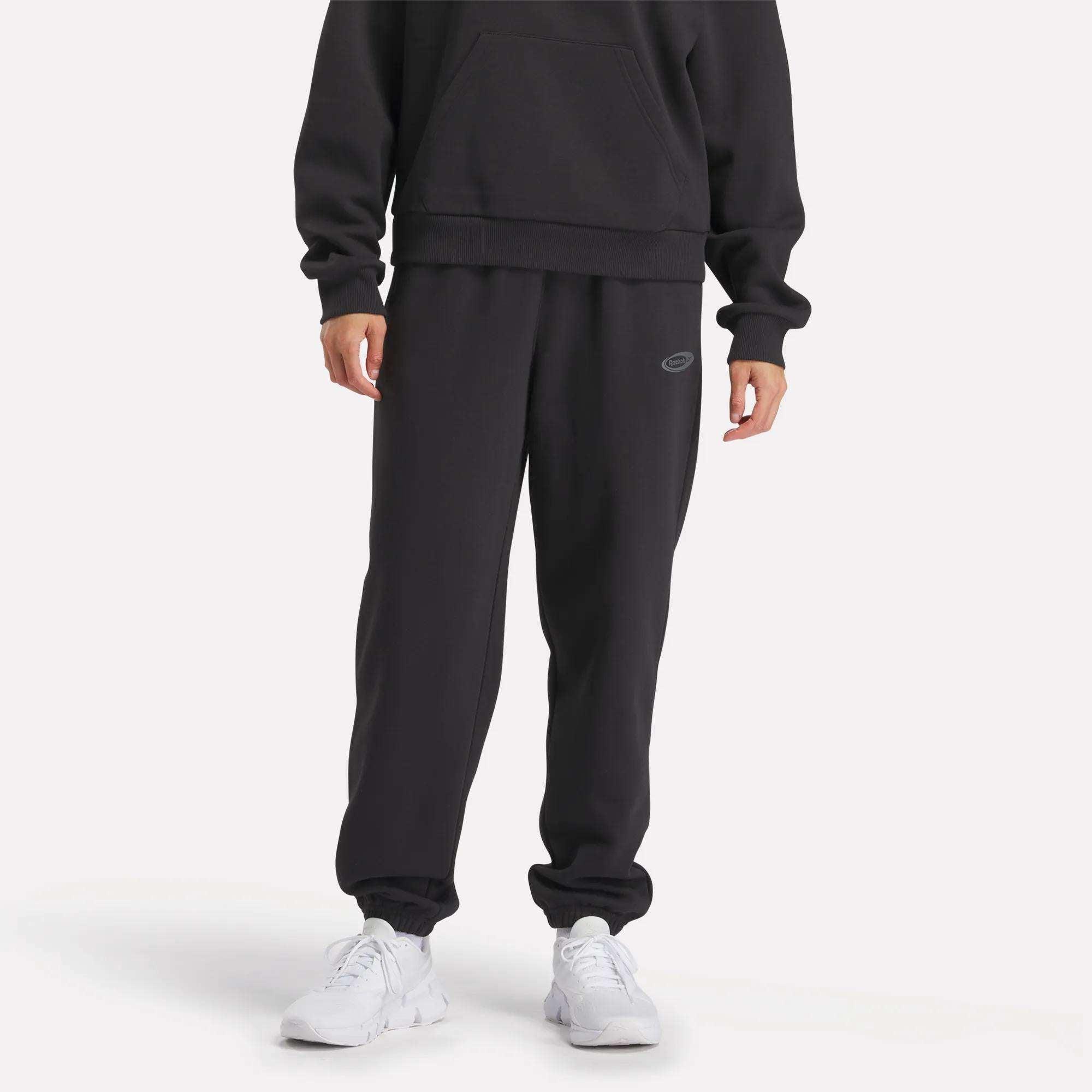 High-rise pants made of soft fleeceGet rest day vibes when you wear these women's Reebok pants. Supremely soft fleece feels great against your skin. The high-rise waist is flexible to allow for comfortable movement.