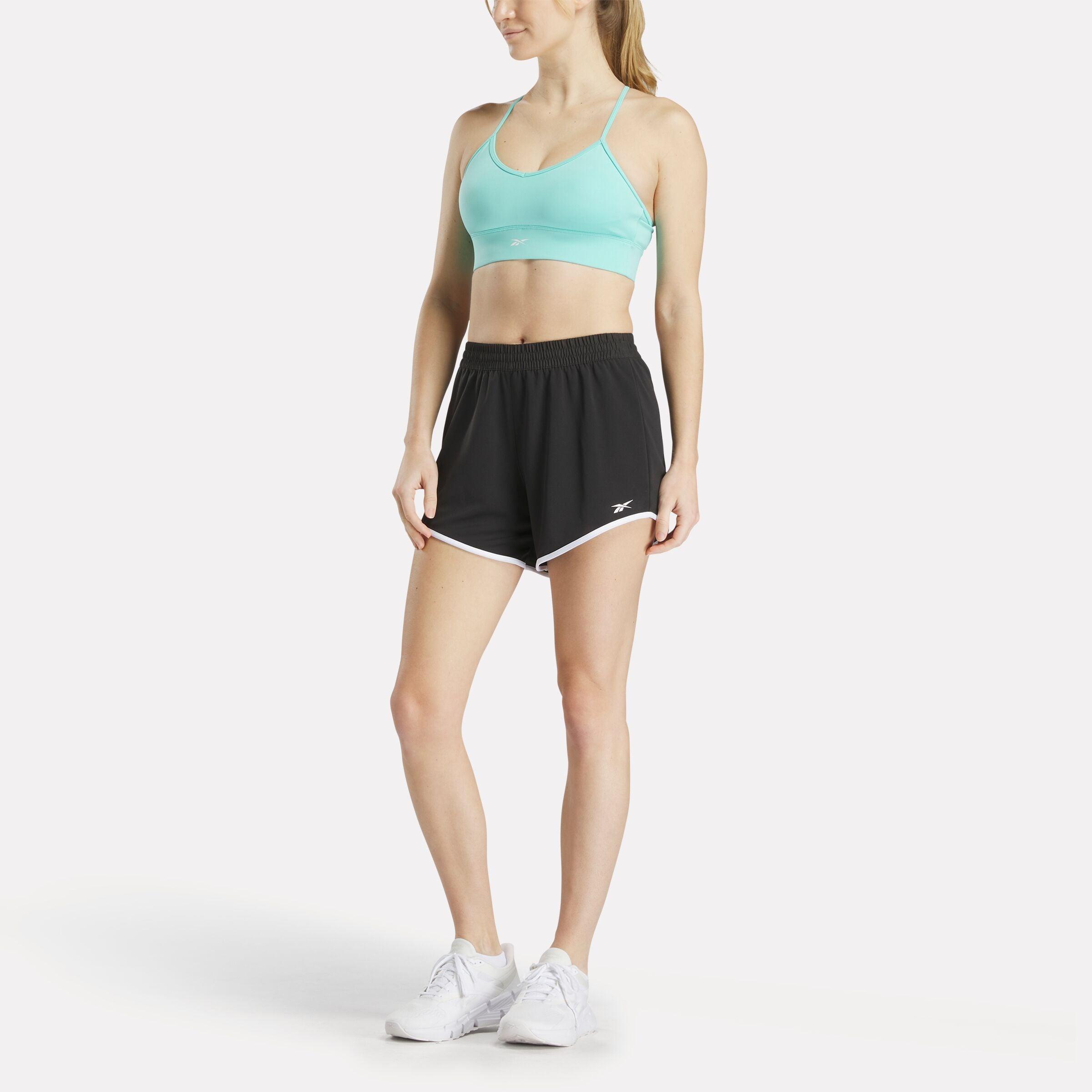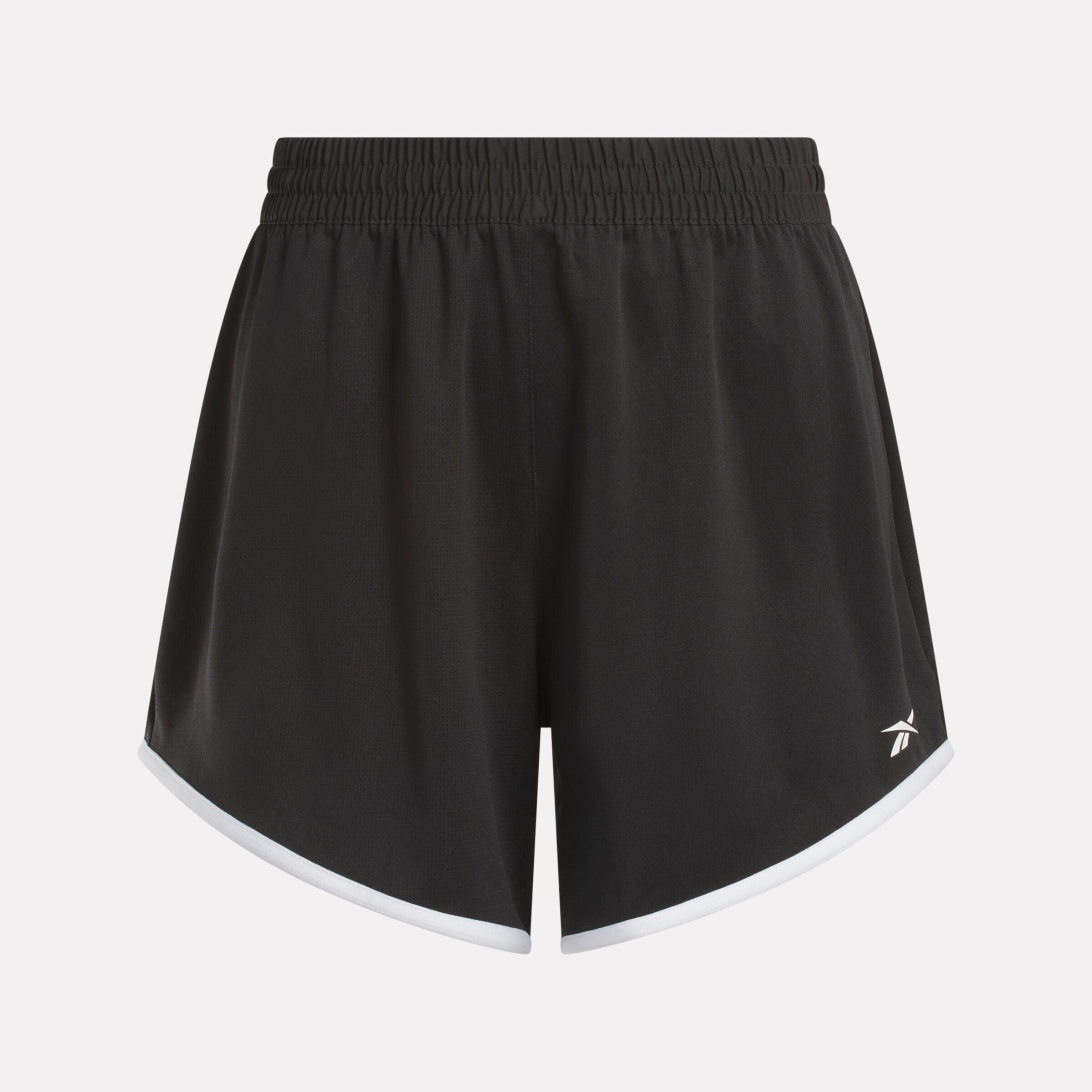 Classic training shorts with piping details A staple in any workout wardrobe, these women's Reebok training shorts help you go after your goals. Knit fabric gives you comfort and freedom of movement as you squat, lunge and run. Contrast piping at the hem adds a pop of color.